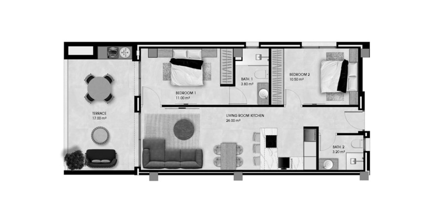 House floor plan «2BR-16», 2 bedrooms in Pinet Beach II