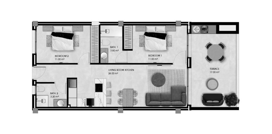House floor plan «2BR-17», 2 bedrooms in Pinet Beach II