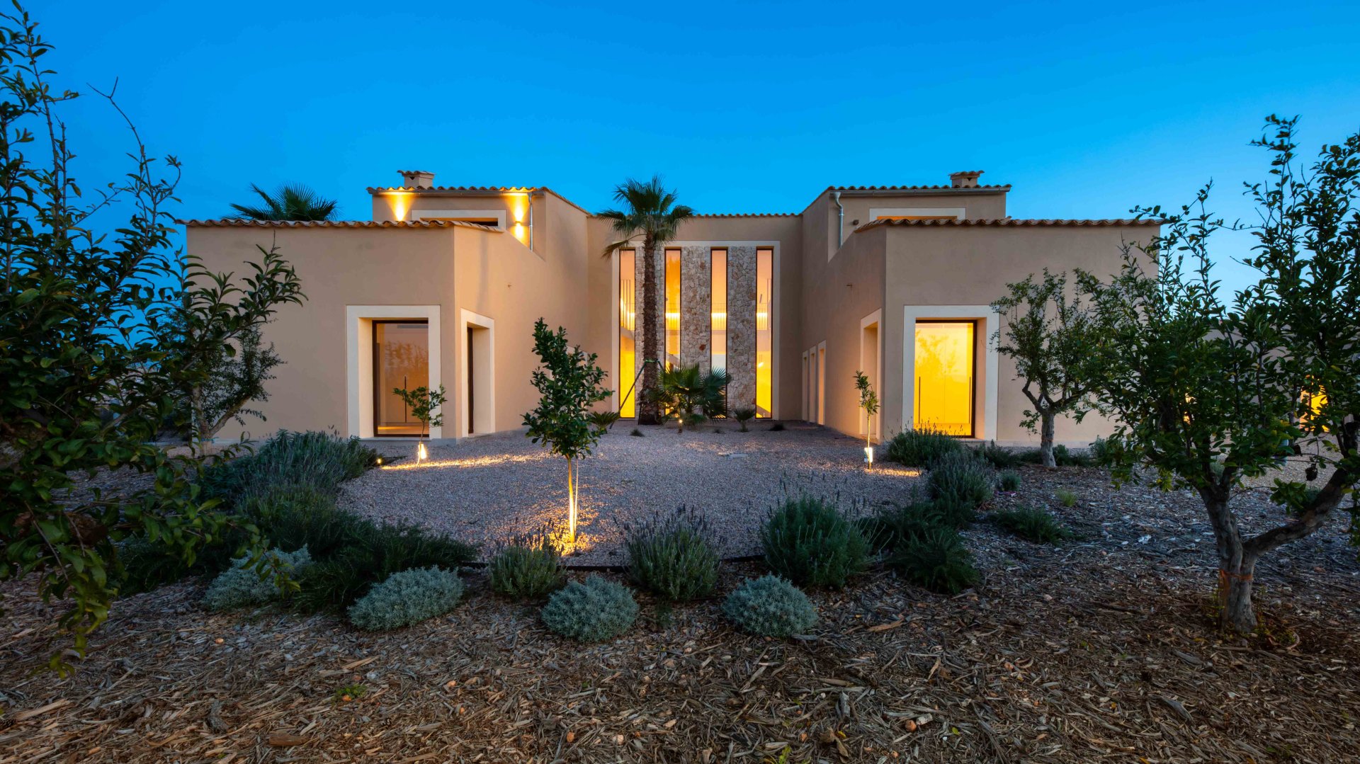 Derzeit sind Landschafts- und Gartenbauarbeiten im Gange, bei denen der gesamte Eingangsbereich der Villa gestaltet und die Umgebung des Anwesens verschönert wird, um eine gepflegte und einladende natürliche Umgebung zu schaffen.