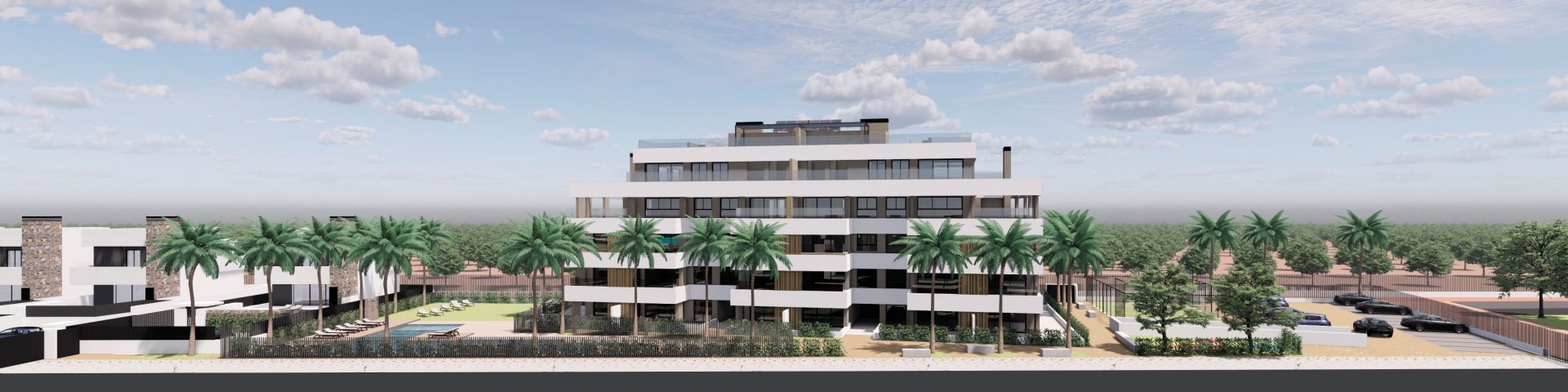 Entdecken Sie diesen eleganten Neubaukomplex, der sich in einer angesehenen privaten Ferienanlage in der Provinz Murcia befindet. Diese neue Anlage bietet 24 moderne Design-Wohnungen, die von weitläufigen Grünflächen umgeben sind und Zugang zu einer ganzen Reihe erstklassiger Einrichtungen und Dienstleistungen haben. Die Anlage verfügt über einen 24-Stunden-Sicherheitsdienst und einen eingeschränkten Zugang, so dass ein Höchstmaß an Privatsphäre und Ruhe für alle Bewohner gewährleistet ist. Diese Umgebung verbindet die Ruhe der Natur mit den Annehmlichkeiten eines modernen Resorts und ist damit die ideale Wahl für alle, die Exklusivität, Komfort und einen entspannten Lebensstil an der Costa Cálida suchen.AUSSENBEREICHEDas Außendesign des Komplexes spiegelt eine Kombination aus zeitgenössischen Linien und hochwertigen Materialien wider und schafft eine moderne Ästhetik, die sich nahtlos in die natürliche Umgebung einfügt. Die Architektur der Gebäude ist so konzipiert, dass sie das natürliche Licht nutzt und einen ungehinderten Blick auf die umliegenden Grünflächen und die Landschaft bietet. Aufteilung der Wohnungen: Wohnungen mit 2 und 3 Schlafzimmern und 2 Vollbädern. Erdgeschossoptionen mit privatem Garten, mittlere Etagen mit großen Terrassen und Penthäuser mit privatem Solarium. Ein Parkplatz und ein Abstellraum sorgen für zusätzlichen Komfort. Große Fenster, die das natürliche Licht maximieren und einen Panoramablick bieten. Optimale Ausrichtung, um das Sonnenlicht das ganze Jahr über zu nutzen. Der Komplex ist von einem Landschaftsgarten mit einheimischer Vegetation und dekorativen Elementen umgeben, die eine ruhige und raffinierte Atmosphäre schaffen.INNENBEREICHEDie Wohnungen sind so konzipiert, dass sie ein modernes und komfortables Wohnerlebnis bieten, mit einer Kombination aus hochwertigen Materialien und einem funktionalen Design, das den Raum maximiert: Offener Grundriss, der das Wohn-Esszimmer und die Küche miteinander verbindet und so eine geräumige und durchlässige Umgebung schafft. Offene Küche, ausgestattet mit modernsten Geräten und modernen Oberflächen. Einbauschränke in allen Schlafzimmern, die eine praktische Lösung für die Aufbewahrung bieten. Moderne Bäder mit Designermöbeln, hochwertigen Armaturen und Fußbodenheizung für mehr Komfort. Elektrische Jalousien in den Schlafzimmern für mehr Komfort und Privatsphäre. Sparsame LED-Beleuchtung im ganzen Haus. Aerothermisches System für die Warmwasserbereitung, hocheffizient und nachhaltig. Vollständig installierte Klimaanlage (warm-kalt), die das ganze Jahr über für Komfort sorgt. Thermolackiertes Aluminium-Tischlerwerk mit Wärmebrückenunterbrechung zur Verbesserung der Wärme- und Schalldämmung. Die Innenräume spiegeln einen modernen Stil wider, mit klaren Linien, neutralen Tönen und einem Layout, das Funktionalität und Komfort bietet.GEMEINSCHAFTSBEREICHEDiese exklusive Wohnanlage bietet ein Resort-ähnliches Lebensgefühl mit Einrichtungen, die für Freizeit und Wohlbefinden ausgelegt sind: Gemeinschaftsschwimmbad mit Salz-Chlor-System, umgeben von einer Liegewiese und Liegestühlen. Paddle-Tennisplatz für Sportbegeisterte. Kinderbereich mit Schaukeln und Spielen für Kinder. Große Gartenbereiche mit einheimischer Vegetation und Ruhezonen. Social Club mit Restaurant und Räumlichkeiten für private Veranstaltungen. Wander- und Radwege in der gesamten Anlage. Hundeparks und Spielplätze für Haustiere. Minigolfplatz zum Spielen mit der Familie oder mit Freunden. 17.000 m² großer künstlicher See mit kristallklarem Wasser und weißen Sandstränden, die eine paradiesische Umgebung schaffen, die an die Karibik erinnert. Chiringuitos und Bars auf den Inseln des Sees, um Cocktails und Snacks mit Blick auf das Wasser zu genießen. Die Freizeiteinrichtungen sind so konzipiert, dass ein aktiver und entspannter Lebensstil möglich ist, so dass die Bewohner jeden Augenblick genießen können.TORRE-PACHECOTorre Pacheco in der Region Murcia zeichnet sich durch seine ländliche Atmosphäre und seine Nähe zur Küste aus. Obwohl es sich nicht um einen Massentourismusort handelt, liegt sein Charme in der ruhigen Umgebung und der Verbindung zur Natur. Der Tourismus in Torre Pacheco konzentriert sich auf die ländliche Umgebung, die ideal zum Wandern und zur Vogelbeobachtung in Naturgebieten wie dem Regionalpark Salinas y Arenales de San Pedro del Pinatar ist. Darüber hinaus bietet die Nähe zu Stränden wie dem Mar Menor und dem Mittelmeer eine breite Palette von Aktivitäten an der Küste. Der Lebensstil in Torre Pacheco ist beschaulich und im ländlichen Leben verwurzelt. Die Bewohner schätzen die Ruhe, das Gemeinschaftsleben und die lokalen Traditionen. Die Gastronomie basiert auf typischen Gerichten der Region, mit mediterranen Einflüssen und lokalen Produkten. Torre Pacheco bietet eine ruhige und ländliche Atmosphäre für diejenigen, die ein ruhiges Leben in einer natürlichen und authentischen Umgebung in der Nähe der Mittelmeerküste suchen.