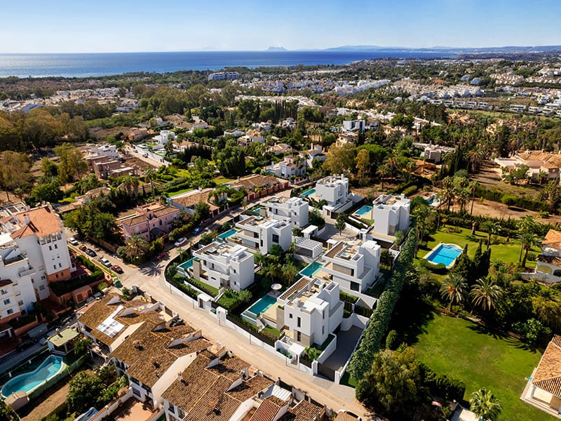 In der prestigeträchtigen Gegend von Atalaya, in Estepona, befindet sich ein exklusiver Komplex von sieben freistehenden Villen, die sich durch ihr modernes Design, ihre Privatsphäre und ihre strategische Lage im Herzen des sogenannten Goldenen Dreiecks der Costa del Sol auszeichnen. Weniger als 10 Minuten von Puerto Banús und ganz in der Nähe der Strände von Saladillo und Guadalmansa, stellen diese Häuser eine perfekte Kombination aus Ruhe, Luxus und Nähe zu allen Dienstleistungen.AUSSENBEREICHEJede Villa wurde als Einzelstück konzipiert, mit großen privaten Gärten, eigenem Swimmingpool und einer Sonnenterrasse mit Vorinstallation für einen Jacuzzi, ideal zum Entspannen mit Blick auf das Mittelmeer. Die moderne und elegante Architektur fügt sich perfekt in die natürliche Umgebung ein. Darüber hinaus verfügen die Häuser über einen Keller zum Parken und mehrere Terrassen, die das Leben im Freien und die Helligkeit in allen Räumen verbessern.INNENBEREICHEDie Villen sind auf vier Ebenen verteilt: Untergeschoss, Erdgeschoss, erster Stock und Solarium. Alle verfügen über ein Schlafzimmer im Erdgeschoss, doppelte Raumhöhe im Wohnzimmer für optische Geräumigkeit und ein Ankleidezimmer im Hauptschlafzimmer. Die beiden größeren Häuser verfügen über 4 Schlafzimmer und 5 Bäder, während die anderen fünf Häuser 3 Schlafzimmer und 3 Bäder bieten. Die Qualität der Materialien, das funktionelle Design und die Vorinstallation eines Aufzugs vervollständigen diese Wohnungen, die für Komfort und Eleganz konzipiert wurden.ESTEPONAEstepona an der Costa del Sol besticht durch seinen andalusischen Charme, seine goldenen Strände und seine reiche Geschichte. Die blumengeschmückten Straßen, die Altstadt mit ihren weiß getünchten Häusern und die Plaza de las Flores spiegeln das mediterrane Flair wider. Der Tourismus in Estepona konzentriert sich auf seine Strände, wie den Playa de la Rada, seine Strandpromenade und sein pulsierendes Nachtleben. Feste wie die Osterwoche und die San-Isidro-Messe geben einen Eindruck von der Kultur und den Traditionen der Stadt. Der Lebensstil in Estepona ist entspannt und einladend. Die Einheimischen genießen das Leben an der Küste, die lokale Gastronomie in den Chiringuitos und Restaurants und die kulturellen Veranstaltungen, die den Reichtum Andalusiens hervorheben. Die Gemeinschaft ist eng miteinander verbunden und das Leben im Freien wird gefördert. Estepona ist ein Ort, der Geschichte, Naturschönheiten und eine einladende Atmosphäre miteinander verbindet, was ihn zu einem beliebten Reiseziel für Touristen und für diejenigen macht, die den mediterranen Lebensstil genießen möchten.