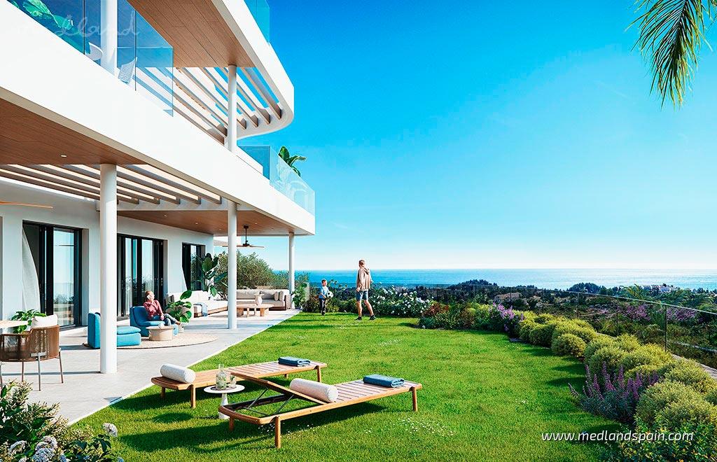Diese modernen Apartments in Mijas Costa liegen in privilegierter Lage an der Costa del Sol, direkt am Golfplatz und nur 10 Autominuten vom Strand entfernt. Dank der Nähe zu Málaga, Marbella, Benalmádena und Fuengirola sowie nur 25 Minuten zum Flughafen Málaga ist diese Wohnanlage ideal als Zweitwohnsitz oder zur ganzjährigen Nutzung geeignet.Die Apartments bieten einen herrlichen 180°-Panoramablick auf das Meer, die umliegenden Berge und die Stadt. Die Gemeinschaftsanlage im Resort-Stil umfasst zahlreiche Freizeitbereiche wie einen Außenpool, ein beheiztes Hallenbad, ein Fitnessstudio, einen Yoga-Bereich sowie ein Spa mit Whirlpool, Sauna und Hammam. Es gibt außerdem einen Coworking-Bereich, eine Gastrobar, Spielzonen für Kinder und großzügige Gartenflächen.Alle Wohnungen sind modern gestaltet, mit offenen Grundrissen, viel Tageslicht und großzügigen Terrassen. Die Erdgeschosswohnungen verfügen zusätzlich über einen privaten Garten. Die Küchen sind mit Elektrogeräten ausgestattet, die Schlafzimmer verfügen über elektrische Rollläden, in den Bädern gibt es Fußbodenheizung. Jede Wohnung hat einen Abstellraum sowie einen Stellplatz in der Tiefgarage.Bis auf die 1-Zimmer-Wohnung verfügen alle Hauptschlafzimmer über ein eigenes Bad. Das Projekt ist BREEAM-zertifiziert und bietet eine App zur einfachen Verwaltung von Serviceleistungen der Wohngemeinschaft. Zudem ist eine Vorinstallation für Ladestationen von Elektrofahrzeugen vorhanden.Unsere Auswahl an Apartments in Mijas Costa verbindet hochwertiges Wohnen, beeindruckende Aussichten und eine einzigartige Lage direkt am Golfplatz.