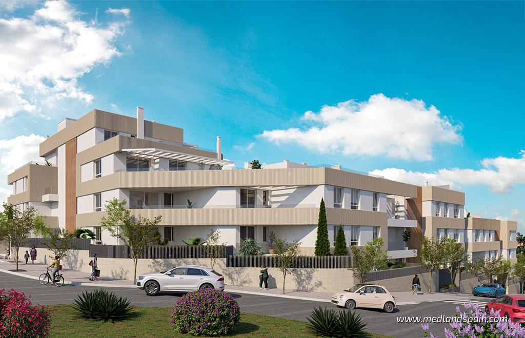 Wohnungen in Estepona, gelegen in einer ruhigen und gut angebundenen Wohngegend an der westlichen Costa del Sol, nur 5 Autominuten vom Stadtzentrum und 10 Minuten vom Strand entfernt. Diese neue Wohnanlage vereint Komfort mit guter Erreichbarkeit von Schulen, Supermärkten, medizinischen Einrichtungen, Freizeitangeboten und Restaurants. Auch die Altstadt von Estepona, der Parque del Calvario, der Küstenwanderweg und die Sierra Bermeja befinden sich in der Nähe. Der Flughafen Málaga ist weniger als eine Stunde entfernt.Die modernen, exklusiven Wohnungen verfügen über 1 bis 3 Schlafzimmer und bieten offene, helle Wohnbereiche mit direktem Zugang zu großzügigen Terrassen. Erdgeschosswohnungen verfügen über private Gärten, Penthouse-Wohnungen über große Terrassen – einige zusätzlich mit Dachterrasse.Alle Einheiten bieten hochwertige Ausstattungen, Klimaanlage mit Luftkanälen, sowie vollständig ausgestattete Badezimmer. Die Küchen sind offen gestaltet und in den Wohnbereich integriert. Jede Wohnung beinhaltet zudem einen Tiefgaragenstellplatz und einen privaten Abstellraum.Die Wohnanlage ist vollständig geschlossen und bietet ausgezeichnete Gemeinschaftsbereiche mit einem Salzwasserpool, gepflegten Grünflächen, einem komplett ausgestatteten Fitnessraum und einem Mehrzweckraum. Die ruhige Umgebung, die Nähe zur Natur und zu allen Dienstleistungen sowie die verschiedenen Grundrisse machen diese Wohnungen zu einer idealen Wahl für den Erst- oder Zweitwohnsitz an der Costa del Sol.Unsere Auswahl an Wohnungen in Estepona bietet eine ausgezeichnete Gelegenheit, das mediterrane Lebensgefühl in moderner und sicherer Umgebung zu genießen.