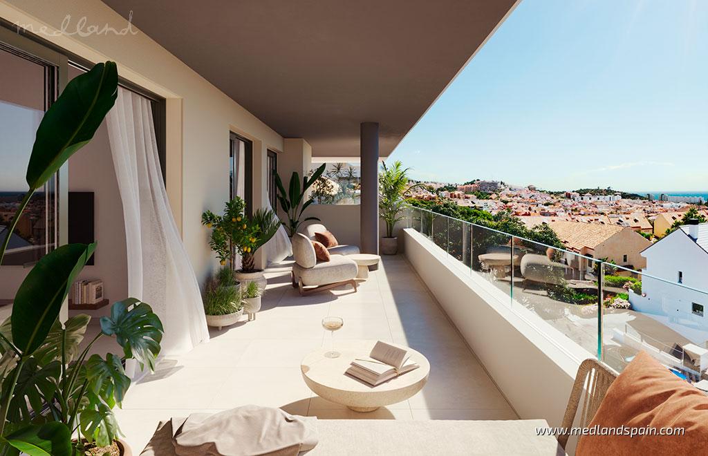 Im Herzen einer der begehrtesten Wohngegenden an der westlichen Costa del Sol vereinen diese Apartments in Fuengirola Design, Komfort und den mediterranen Lebensstil. Nur 1,3 km vom Strand und 2 km vom lebhaften Stadtzentrum entfernt bietet die Lage eine perfekte Balance zwischen Ruhe an der Küste und der Nähe zu Geschäften, Restaurants, Schulen und Freizeiteinrichtungen. Das Autobahnnetz und der Bahnhof von Fuengirola sorgen für ausgezeichnete Verbindungen zur Stadt Málaga und zum Flughafen, der nur 15 Autominuten entfernt liegt.Die Anlage besteht aus hellen und großzügigen Apartments mit 2 oder 3 Schlafzimmern und 2 Badezimmern, die so gestaltet sind, dass sie das natürliche Licht und offene Wohnräume optimal nutzen. Jede Wohnung verfügt über eine offene Küche und große Terrassen, während die Erdgeschosswohnungen Gärten besitzen, die Innen- und Außenbereiche harmonisch miteinander verbinden. Je nach Etage genießen die Apartments freie oder, in einigen Fällen, Meerblicke. Jede Einheit ist mit Klimaanlage, komplett ausgestatteten Badezimmern, zwei Tiefgaragenstellplätzen und einem Abstellraum ausgestattet.Die Gemeinschaftsbereiche sind darauf ausgelegt, ein umfassendes mediterranes Lebensgefühl zu bieten. Dazu gehören angelegte Gärten, ein großer Familienpool und ein Kinderbecken mit Strandbereich sowie ein spektakulärer Infinity-Pool auf der Dachterrasse des Gebäudes mit einem stilvollen Chill-out-Bereich, der einen Panoramablick auf die Küste bietet. Darüber hinaus stehen den Bewohnern ein Spa, ein Fitnessraum, ein Kinosaal und ein Coworking-Bereich zur Verfügung – alles für maximalen Komfort und Lebensqualität konzipiert.Dieses Projekt verkörpert das Wesen des modernen mediterranen Lebens in Fuengirola, wo Architektur, Wohlbefinden und Meer in perfekter Harmonie zusammenkommen.
