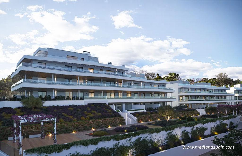 Diese modernen Apartments in Estepona befinden sich in der gefragten Wohngegend, die als Neue Goldene Meile bekannt ist, an der westlichen Costa del Sol. Dieses etablierte Umfeld entwickelt sich kontinuierlich weiter und überzeugt durch ein breites Angebot an Dienstleistungen, die Nähe zu mehreren Golfplätzen und Yachthäfen sowie eine gute Anbindung an Freizeit-, Kultur- und Gastronomieangebote. Hier entsteht ein ausgewogenes Zusammenspiel aus Ruhe und Alltagstauglichkeit, ideal sowohl für den dauerhaften Wohnsitz als auch für längere Aufenthalte an der Küste.Das Wohnprojekt umfasst Apartments mit 2 oder 3 Schlafzimmern, die durch eine durchdachte Raumaufteilung überzeugen und auf Helligkeit, Großzügigkeit und fließende Übergänge zwischen Innen- und Außenbereichen ausgelegt sind. Die Erdgeschosswohnungen verfügen über eigene Gartenbereiche, die den Wohnraum nach draußen erweitern, während sich die Penthäuser durch ihre großzügige Dachterrasse auszeichnen, die ganzjährig zum Entspannen im mediterranen Klima einlädt. Je nach Höhe und Ausrichtung bieten die oberen Etagen und die Penthäuser einen offenen Blick in Richtung Mittelmeer.Die Innenräume verbinden Funktionalität mit Wohnkomfort. Die offenen Küchen sind mit Elektrogeräten ausgestattet und fügen sich harmonisch in den Wohnbereich ein. Die Badezimmer sind vollständig ausgestattet, wobei das Hauptbad über ein Doppelwaschbecken verfügt. Eine Klimaanlage sorgt das ganze Jahr über für angenehme Temperaturen. Große Fensterflächen lassen viel Tageslicht in die Räume und schaffen helle, flexible Wohnbereiche, die sich sowohl für den Alltag als auch für gesellige Anlässe eignen.Die Gemeinschaftsbereiche wurden mit Blick auf ein ausgewogenes und praktisches Lebenskonzept gestaltet. Gepflegte Gartenanlagen mit wassersparender Bepflanzung bilden ein attraktives und leicht zu pflegendes Umfeld. Ergänzt wird das Angebot durch einen Gemeinschaftspool, einen Fitnessraum und einen Coworking-Bereich. Ein Gemeinschaftsraum, ein Fahrradstellbereich und ein Recyclingpunkt runden die Einrichtungen ab und sorgen für Ordnung und Komfort innerhalb der Anlage.Der Strand liegt rund 1,3 km entfernt und ist in etwa 5 Autominuten erreichbar. Das Zentrum von Estepona befindet sich ebenfalls nur etwa 10 Minuten entfernt. In der Umgebung finden sich Einkaufszentren, Golfplätze, Yachthäfen sowie ein vielfältiges kulturelles und gastronomisches Angebot. Der Flughafen Málaga–Costa del Sol liegt ungefähr 70 km entfernt und bietet bequeme nationale und internationale Verbindungen.