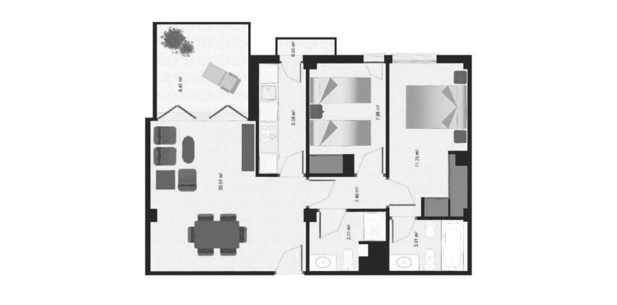 Apartment floor plan «B2A16», 2 bedrooms in Living Estepona