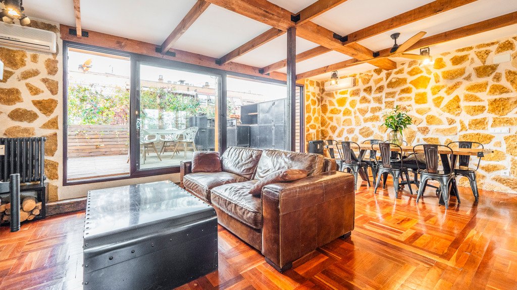 El dormitorio principal cuenta con vistas a la terraza y está revestido con la misma pared de piedra natural que el comedor. El segundo dormitorio, es aún más amplio que el principal,.