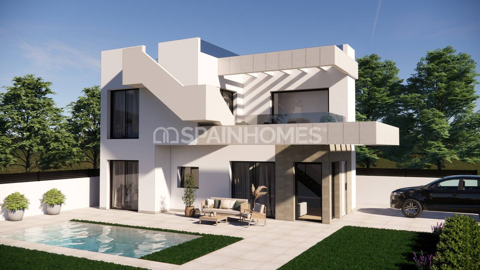 Dormitorios: 3Baños: 2Espacio vital: 108 m2 Distancia al mar: 8 kmModernos chalets de una planta en Los Montesinos Detalles
