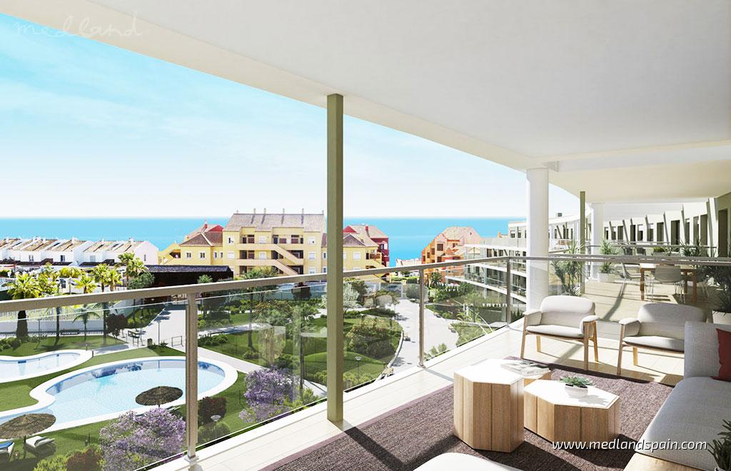 Residencial de apartamentos en segunda línea de playa en Manilva. Una ubicación privilegiada en la frontera entre las provincias de Cádiz y Málaga, con acceso a fabulosas playas de arena blanca y también a los prestigiosos campos de golf de la zona, como La Duquesa, Doña Julia o el Real Club de Golf Sotogrande.A poca distancia del residencial se encuentra el puerto de la Duquesa y el puerto de Sotogrande, además el aeropuerto de Gibraltar es una buena opción, pues está a solo a 30km.La promoción ofrece viviendas de 2 y 3 dormitorios, distribuidas en edificios de hasta 4 alturas. Disponibles varias tipologías de apartamentos, como bajos con jardín privado, plantas intermedias con grandes terrazas y áticos con vistas al mar. Las viviendas se entregan con cocinas amuebladas y equipadas con electrodomésticos e incluyen una plaza de aparcamiento y trastero. El residencial cuenta con una extensa zona comunitaria exterior con dos piscinas y amplios jardines. También dispone de un gimnasio equipado para uso y disfrute de todos los residentes.Ubicación