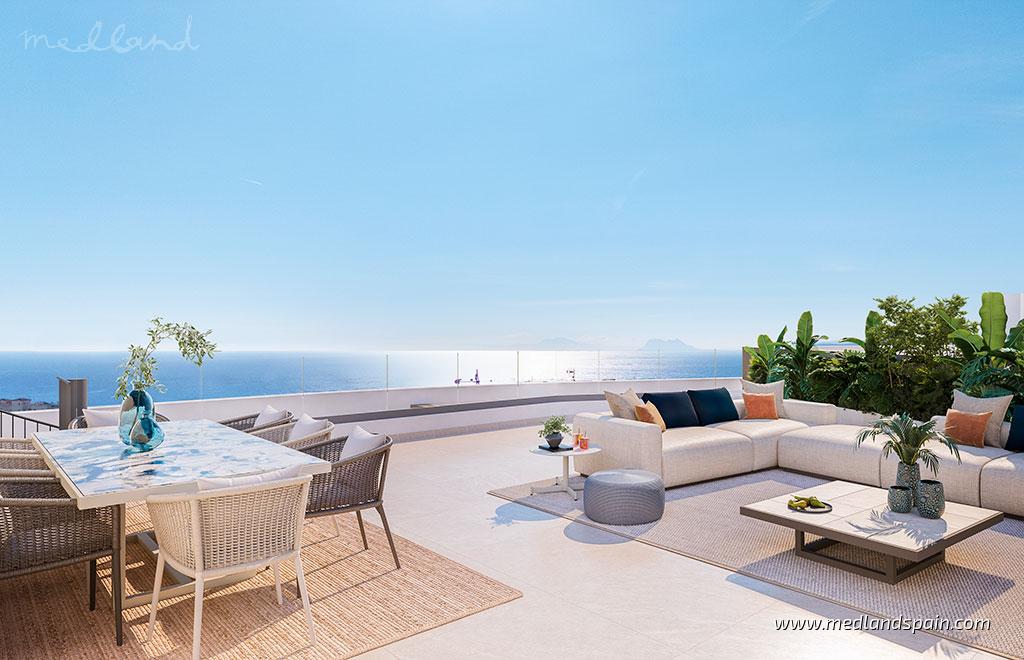 En la demandada zona de Las Mesas, en Estepona, este nuevo complejo residencial combina el confort moderno con el encanto natural de la Costa del Sol. A solo 1,3 km de la playa y a 2 km del puerto deportivo de Estepona, los residentes disfrutan de un acceso fácil a supermercados, colegios, instalaciones deportivas y transporte público. El pintoresco casco antiguo, con sus calles andaluzas tradicionales, plazas animadas y una gran oferta gastronómica, está a solo 10 minutos en coche. Muy cerca se encuentran también los campos de golf de Estepona Golf y Valle Romano Golf. El aeropuerto internacional de Málaga se alcanza en menos de una hora y el de Gibraltar en apenas 45 minutos.El complejo ofrece apartamentos en Estepona de 1, 2 y 3 dormitorios. Las plantas bajas cuentan con jardín privado, las plantas intermedias con amplias terrazas y los áticos disfrutan de terrazas en la azotea privadas. Según su orientación, las viviendas ofrecen vistas al mar o a la montaña. Los interiores están diseñados en torno a zonas de día diáfanas que se abren directamente a los espacios exteriores, con dormitorio principal y baño en suite, excepto en los apartamentos de 1 dormitorio. La ventilación cruzada garantiza frescor y comodidad durante todo el año.Todas las viviendas incluyen cocinas modernas con electrodomésticos integrados, aire acondicionado por conductos y acabados de alta calidad. Además, disponen de plaza de aparcamiento subterránea y trastero.El residencial, cerrado y seguro, cuenta con magníficas zonas comunes: dos piscinas al aire libre, piscina cubierta climatizada con spa, gimnasio completamente equipado, zona de calistenia al aire libre, jardines ajardinados, área de juegos infantiles e incluso estación de lavado de coches en el garaje. El elegante vestíbulo de entrada aporta un plus de exclusividad.Estas viviendas son la elección perfecta para quienes buscan una segunda residencia o un hogar permanente en la Costa del Sol.