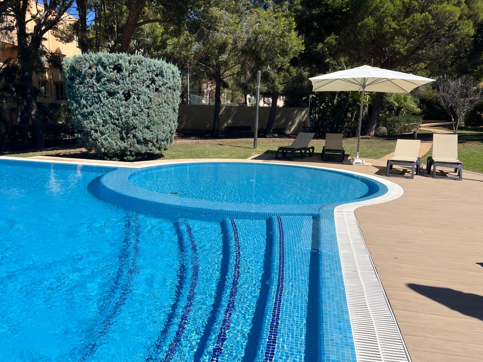 Apartamento espacioso ubicado en un complejo de calidad en Santa Ponsa con pista de padel y piscina comunitaria. Cerca de campos de golf y tan solo 5 minutos en coche de Port Adriano y la playa. La propiedad con 3 dormitorios y 3 baños tiene una superficie construida de aproximadamente 170 m2 incluyendo 15 m2 de terraza cubierta. Características adicionales incluyen calefacción central, aire acondicionado, lavadora y secadora. AmuebladaUbicación