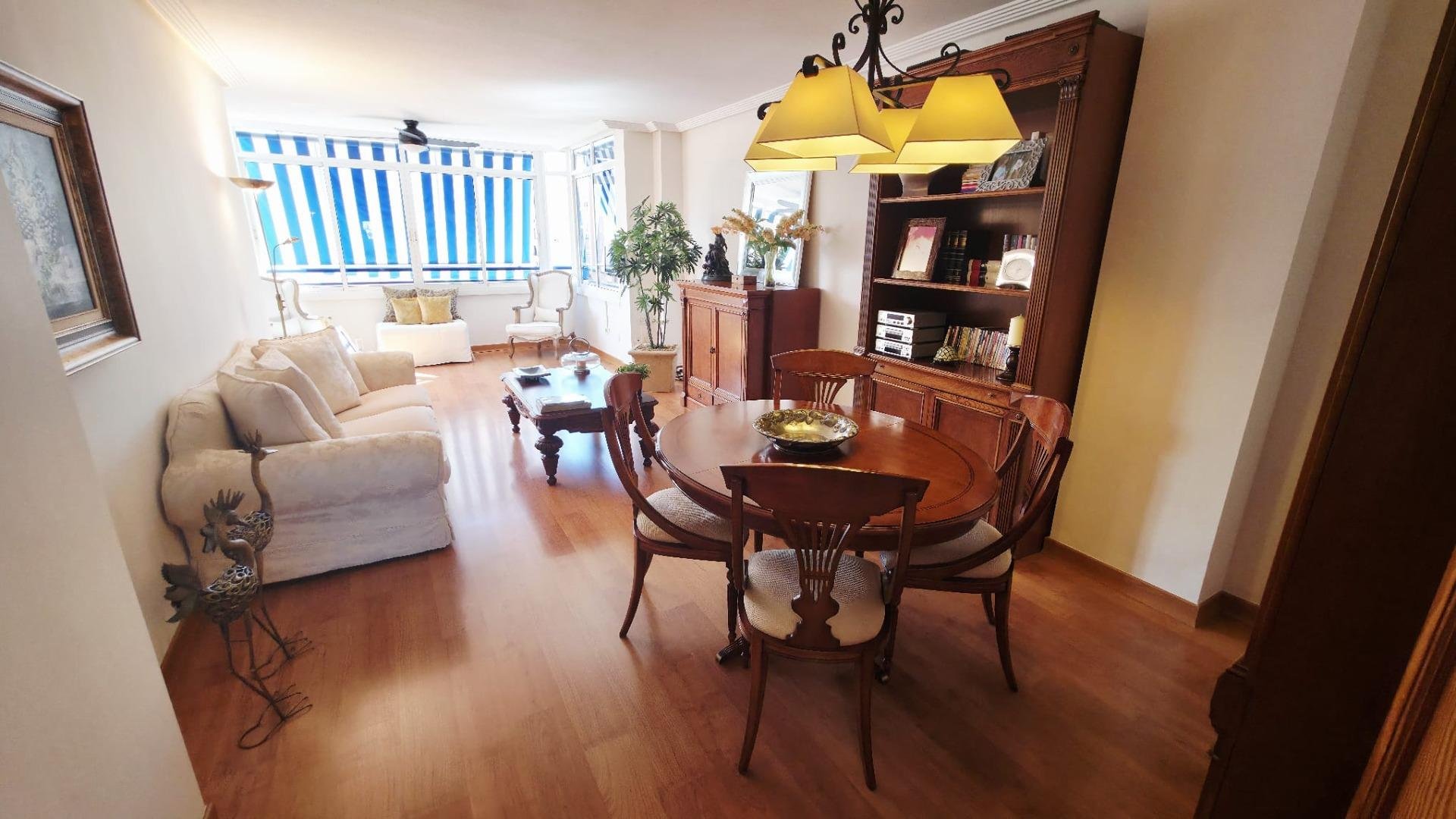Descubre esta excepcional vivienda exterior, situada en la quinta planta con ascensor, que ofrece un estilo de vida inmejorable a pocos pasos del mar. Con una generosa superficie de 121 m², este piso reformado y completamente amueblado incluye todos los electrodomésticos necesarios para tu comodidad diaria. La propiedad dispone de tres acogedores dormitorios dobles equipados con armarios empotrados y dos modernos baños completos. El salón-comedor es amplio y luminoso, mientras que la cocina cuenta con office y galería independiente.Los acabados son excelentes; suelos laminados (tarima), aire acondicionado frío/calor por conductos en todas las habitaciones e instalaciones modernas como carpintería interior en pino y ventanas exteriores tipo climalit.Este inmueble se complementa perfectamente con una terraza acristalada equipada con toldos desplegables que brindan vistas despejadas al entorno. Aprovecha también las comodidades adicionales: acceso directo desde el ascensor a una amplia plaza garaje apta para coche and moto además del trastero incluido. En cuanto a servicios comunitarios destaca la urbanización completa donde podrás disfrutar piscina privada, vestuarios bien equipados, club social ideal para reuniones familiares o eventos deportivos así como pistas deportivas junto parque infantil. Cercano encontrara comercios variados restaurantes típicos centros médicos paradas autobuses, tranvías justo en la puerta, tanto hacia centro de la ciudad(a solo diez minutos)como aeropuerto(veinte minutos).No pierdas esta oportunidad única! Convierte este hogar lleno luz confortabilidad ubicación privilegiada ¡en tu nuevo refugio!