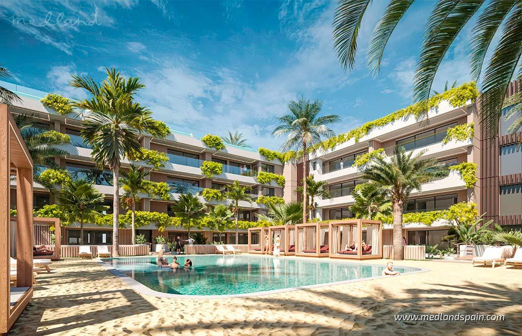 Estos exclusivos apartamentos en la zona emergente de Marbella West, entre Nueva Andalucía y San Pedro de Alcántara, ofrecen el equilibrio perfecto entre la comodidad urbana y la serenidad junto al mar. Este nuevo distrito, en plena expansión, ha sido diseñado en torno al estilo de vida, el bienestar y la conectividad. En el futuro contará con colegios, instalaciones deportivas, desarrollos residenciales de lujo, un hotel de cuatro estrellas y amplias zonas verdes. Está situado a solo 10 minutos de Puerto Banús, a 15 minutos del emblemático resort Puente Romano, a 20 minutos del casco histórico de Marbella y a 40 minutos del aeropuerto de Málaga.El proyecto ofrece una amplia variedad de viviendas, con apartamentos y áticos de 2 a 4 dormitorios, todos con terraza privada. Algunas plantas bajas disponen de jardín privado, y unas pocas de estas incluyen además piscina tipo playa. Los áticos cuentan con solárium, piscina y vistas panorámicas al mar, creando un espacio ideal para disfrutar del exterior. Además, determinadas viviendas en plantas intermedias incluyen jacuzzi en la terraza.En el interior, las viviendas ofrecen una luminosa zona de estar con cocina integrada y acceso directo a la terraza. El dormitorio principal incluye baño en suite, y todas las viviendas disponen de climatización por conductos, cocina completamente equipada con electrodomésticos y plaza de aparcamiento subterránea. Existe la posibilidad de adquirir una segunda plaza con trastero, con coste adicional.Las zonas comunes están concebidas para fomentar el bienestar y el disfrute: jardines con paisajismo mediterráneo, piscina a nivel de jardín y una espectacular piscina infinity panorámica en la azotea. También se incluyen gimnasio totalmente equipado, zona de spa con sauna y vestuarios, área coworking, club social, seguridad 24 horas, recepción y servicio de conserjería.No se trata solo de un complejo residencial, sino de un entorno orientado al futuro donde la arquitectura, la naturaleza y el estilo de vida se integran de forma armónica. Como segunda residencia o como vivienda habitual, este proyecto representa una oportunidad excepcional para vivir en una de las zonas con mayor proyección de la Costa del Sol.