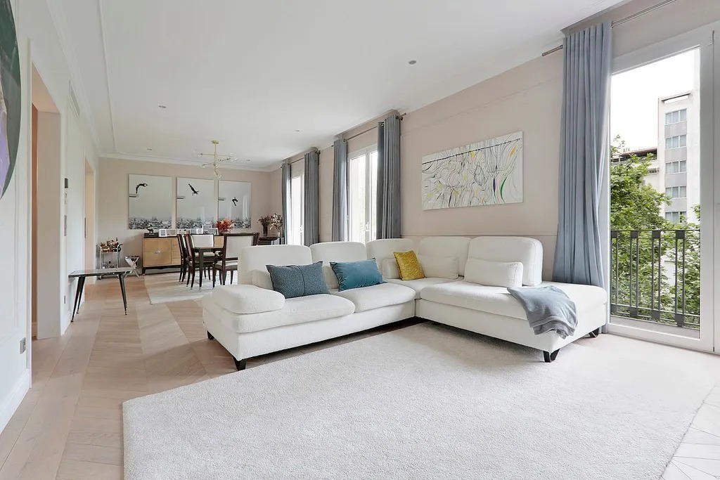 Este exclusivo y elegante piso de 222 m² se encuentra en un edificio clásico de 1944 en la prestigiosa Avinguda Diagonal, a pocos pasos de la Plaça Francesc Macià y de Turó Parc. Con techos altos de 3,4 metros, ofrece el equilibrio perfecto entre amplitud, luz natural y elegancia atemporal.