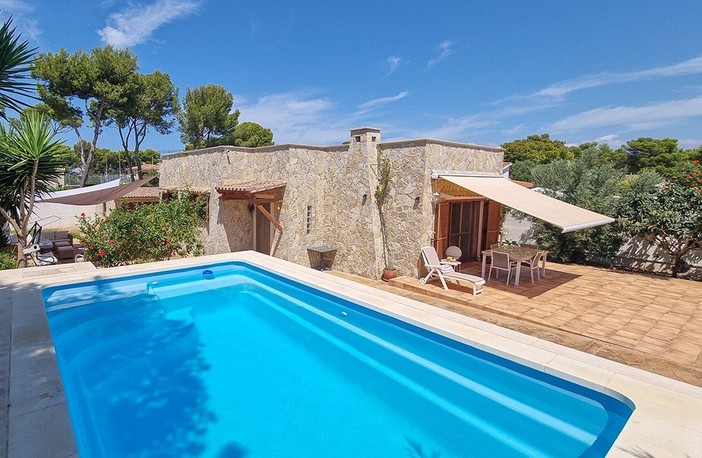 Presentamos una encantadora villa de una sola planta con gran potencial, situada en una de las zonas más verdes y tranquilas del suroeste de Mallorca - El Toro, a pocos pasos del prestigioso puerto deportivo de Port Adriano y de la impresionante costa. Esta villa ofrece la combinación perfecta de privacidad, comodidad y auténtico ambiente mediterráneo. La propiedad se asienta sobre una parcela bien cuidada de aproximadamente 669 m² y ofrece 124 m² de espacio habitable cuidadosamente diseñado. El interior cuenta con tres dormitorios, dos baños (uno en suite), un aseo de invitados, un amplio y luminoso salón-comedor, una cocina totalmente equipada, un lavadero independiente y un práctico trastero, todo en una sola planta para una máxima comodidad. La zona exterior está diseñada para disfrutar durante todo el año del suave clima de Mallorca. Una piscina privada, una zona chill-out con tumbonas, una cocina de verano al aire libre y una zona de barbacoa la convierten en un lugar ideal para el entretenimiento y las reuniones familiares. El jardín mediterráneo añade un toque de privacidad y verdor. Las características adicionales incluyen un garaje privado, aire acondicionado (frío / calor), calefacción central, ventanas de doble acristalamiento con persianas exteriores, y varias áreas de almacenamiento que se pueden adaptar a sus necesidades. El Toro es conocido por su ambiente tranquilo, excelente infraestructura y proximidad a playas, restaurantes, campos de golf y tiendas. Es el lugar perfecto tanto para vivir permanentemente como para una inversión inmobiliaria de calidad. Si usted está buscando un hogar acogedor, funcional y prometedor en Mallorca - esta es una oportunidad que no debe perderse. ¡Póngase en contacto con Grupo Terrasun hoy mismo para obtener más información y concertar una visita.