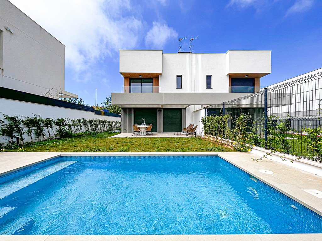 Una casa moderna a estrenar con jardín privado y piscina, ubicada en una prestigiosa zona cerca del mar en Puig de Ros, en la costa sur de Mallorca. La villa, con una superficie habitable de 174 m², está construida con tecnología moderna y materiales de alta calidad, ofreciendo el equilibrio perfecto entre confort, estilo y funcionalidad. La parcela cuenta con un jardín paisajístico, una relajante zona de piscina, una terraza cubierta, zona de barbacoa y aparcamiento privado. En el interior, encontrará un amplio salón con acceso directo al jardín, una cocina americana totalmente equipada con electrodomésticos modernos, cuatro luminosos dormitorios y tres baños. La vivienda cuenta con suelos de mármol con calefacción radiante, aire acondicionado automático y ventanas de doble acristalamiento de alta calidad. La villa forma parte de un tranquilo complejo residencial compuesto por varias casas, rodeado de naturaleza y con fácil acceso al mar y a todos los servicios esenciales, incluyendo supermercados, colegios, restaurantes y clubes deportivos y de golf. Esta propiedad es ideal tanto como residencia habitual como casa de vacaciones. ¡Contacte con Grupo Terrasun para recibir más información o para programar una visita.