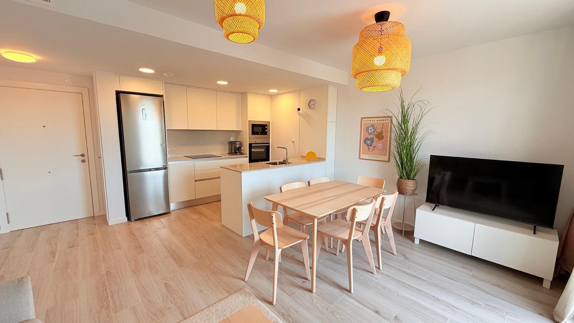 Esta elegante residencia situada en la apreciada ciudad de Dénia, en pleno corazón de la Costa Blanca, constituye una propuesta inmobiliaria sobresaliente para quienes desean disfrutar de un entorno marítimo privilegiado o buscan una inversión segura en una zona de alta demanda. El inmueble, emplazado en la tercera planta de un edificio moderno de cuatro alturas finalizado en 2025, combina una arquitectura actual con un estándar de calidad elevado, ofreciendo una experiencia residencial pensada para el confort y la funcionalidad diaria. Con 57 m² de superficie útil y un total de 62 m² construidos, la vivienda dispone de dos dormitorios luminosos, dos baños completamente equipados, una zona de estar amplia que se integra de forma armoniosa con una cocina abierta de diseño contemporáneo y una terraza de 6,84 m² que invita a disfrutar del clima mediterráneo y del ambiente relajado característico de esta localidad costera. Los interiores han sido concebidos para garantizar amplitud, fluidez y luminosidad, utilizando materiales de primera calidad que aportan durabilidad y estética. Su ubicación estratégica —muy cercana a la playa, al puerto deportivo, a comercios, supermercados, servicios esenciales y una variada oferta gastronómica— permite aprovechar al máximo todo lo que ofrece Dénia sin necesidad de desplazamientos largos. A ello se suma un completo conjunto de instalaciones comunitarias que elevan el valor del residencial, entre las que se incluyen un amplio complejo de piscinas con zonas de baño para diferentes edades y un relajante jacuzzi, extensas áreas ajardinadas cuidadas con detalle, espacios destinados al descanso y la convivencia, un gimnasio interior equipado para actividades deportivas diarias, un club social para reuniones o eventos, una sala multifuncional adaptable a distintas necesidades, un trastero que aporta capacidad de almacenamiento adicional y un aparcamiento comunitario que facilita la comodidad de los residentes. Los gastos vinculados a la propiedad se mantienen dentro de una estructura equilibrada, con un IBI aproximado de 450 euros al año, una tasa de residuos en torno a 120 euros anuales y unos costes de comunidad de aproximadamente 1.200 euros. Este conjunto de atributos convierte esta propiedad en una elección altamente atractiva para quienes buscan establecerse de forma permanente en un entorno mediterráneo excepcional o para quienes desean adquirir un activo inmobiliario con excelente potencial de alquiler, ofreciendo una combinación impecable de calidad, ubicación y estilo de vida.