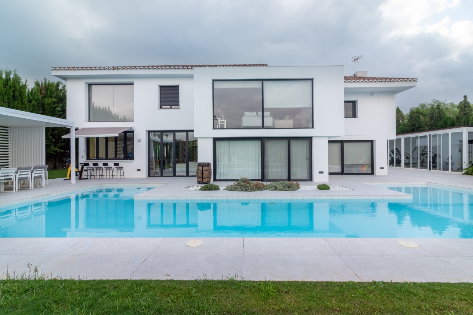 La piscina privada añade un toque de lujo y exclusividad a la propiedad. Está rodeada por la zona verde donde tomar el sol y por la terraza que conecta con la casa. Es el lugar perfecto para refrescarse durante los meses cálidos, organizar reuniones veraniegas inolvidables o simplemente disfrutar de un baño en total privacidad. Sus dimensiones están cuidadosamente pensadas para garantizar comodidad y seguridad para toda la familia.