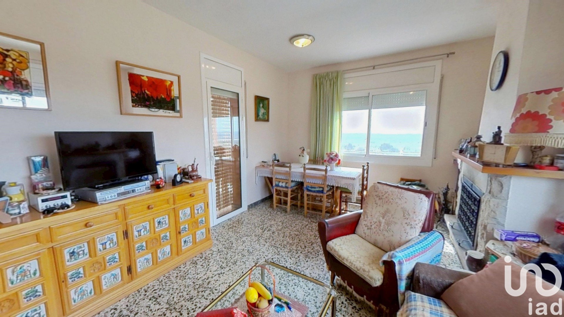 Comedor con chimenea y salida a terraza.