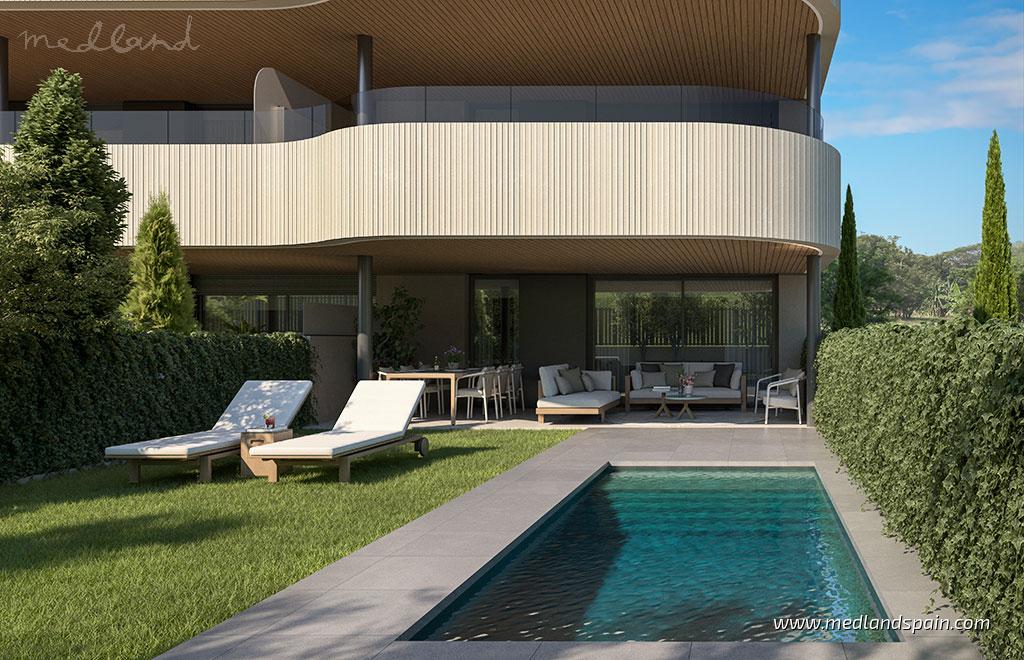 Estos apartamentos en Estepona se sitúan en el corazón del Triángulo de Oro entre Estepona, Benahavís y Marbella, disfrutando de una ubicación privilegiada con vistas al golf y a solo 15 minutos de Puerto Banús. Rodeado de algunos de los mejores campos de golf de la Costa del Sol y a aproximadamente 3 km de la playa, el conjunto combina tranquilidad, buena conexión y estilo de vida mediterráneo, donde las vistas al golf refuerzan la sensación de amplitud y serenidad.El proyecto se compone de apartamentos de 2 y 3 dormitorios, diseñados con una arquitectura elegante y distribuciones amplias que potencian la entrada de luz natural. Las plantas bajas disponen de jardín privado, las plantas intermedias cuentan con amplias terrazas con vistas al golf y los áticos de 3 dormitorios incluyen solárium. Algunas plantas bajas y áticos también disponen de piscina privada. Las viviendas incorporan cocina de concepto abierto totalmente equipada con electrodomésticos, aire acondicionado en salón y dormitorios, además de suelo radiante adicional con control independiente por estancia. Cada vivienda incluye trastero y 1 o 2 plazas de aparcamiento. Según la fase de construcción, es posible personalizar ciertos acabados y elegir entre ducha o bañera.Las zonas ajardinadas envuelven la urbanización, creando un entorno sereno con una gran piscina exterior, área infantil y espacios de descanso. Los residentes también disfrutan de salón comunitario, zona de spa con sauna y hammam, así como gimnasio totalmente equipado, todo ello dentro de un recinto cerrado diseñado para el confort y el bienestar. Con el Aeropuerto de Málaga a aproximadamente 40 minutos y excelentes conexiones por carretera a lo largo de la costa, representa una opción atractiva tanto para residencia habitual como para segunda vivienda o inversión en la Costa del Sol.