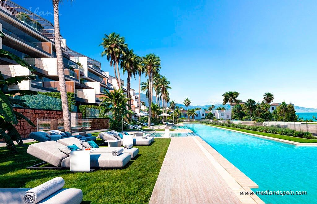 Nuevo proyecto de exclusivas viviendas en primera línea de playa con fantásticas vistas al mar en Manilva. Una ubicación muy privilegiada, que cuenta con fabulosas playas de arena blanca y prestigiosos campos de golf, como La Duquesa, Doña Julia o el Real Club de Golf Sotogrande. Manilva dispone de todos los servicios necesarios para el día a día, y ofrece una amplia oferta gastronómica y de ocio, ya que se sitúa en una zona animada en la frontera entre las provincias de Cádiz y Málaga. A poca distancia del residencial se encuentra además el puerto deportivo de la Duquesa, donde se puede practicar cualquier deporte acuático. Gracias a la buena conexión por carretera, se llega rápidamente a otros enclaves turísticos de la Costa del Sol, como a Sotogrande en 15 minutos, a Estepona en 20, así como a Puerto Banús y Marbella en unos 30 minutos. El aeropuerto de Gibraltar se encuentra a 35 minutos y el de Málaga a una hora.Lujosos apartamentos y áticos de 3 dormitorios con 2 baños, todos con amplias terrazas y fantásticas vistas al mar. Las plantas bajas ofrecen, además, jardín y los áticos un gran solárium. Todos los modelos presentan una zona de día de diseño abierto, integrando cocina con isla, salón y comedor en un único espacio con grandes ventanales que dan acceso a la terraza. El dormitorio principal cuenta con baño privado, un amplio vestidor y acceso a la terraza.Las viviendas se terminan con acabados de primera calidad e incluyen aire acondicionado por conductos, suelo radiante en toda la vivienda, cocina totalmente equipada con electrodomésticos, lavadero, sistema de domótica, trastero y plaza de aparcamiento en el garaje comunitario.La promoción ofrece varias zonas comunitarias de uso exclusivo para sus residentes, destacando los 5.000 m2 de zonas verdes con jardines, gran piscina infinity para adultos y piscina infantil, ambas con cloración salina y fantásticas vistas panorámicas al mar. En el interior, se dispone de recepción, zona coworking, área de lectura y descanso, zona de relajación, yoga y meditación, local comunitario con zona de entretenimiento incluyendo billar, biblioteca, tv y proyector, gimnasio y un fantástico SPA con baño turco, sauna, duchas sensitivas, duchas de cromoterapia y jacuzzi.Situada entre el proyecto y la playa se ubica una gran zona verde pública de 13.500m2, repleta de plantas y flores autóctonas, que dota al área de un entorno natural y relajante en el que vivir.
