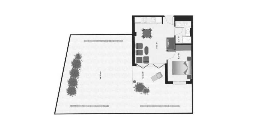 Apartment floor plan «B1A11», 1 bedroom in Living Estepona