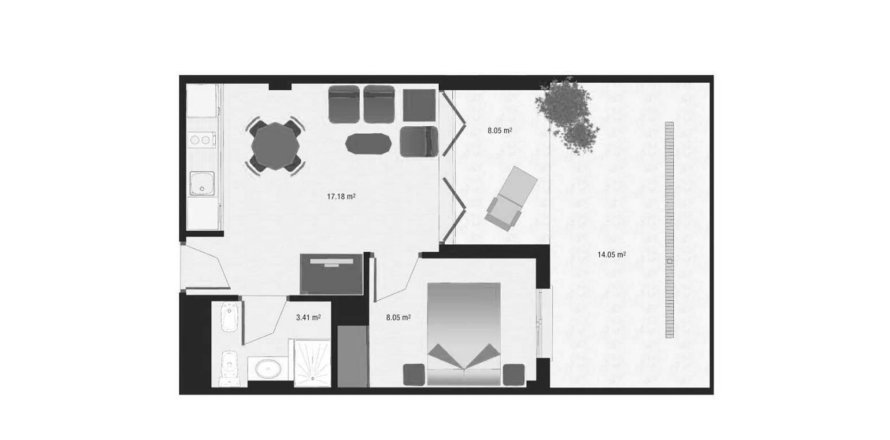 Apartment floor plan «B4A7», 1 bedroom in Living Estepona