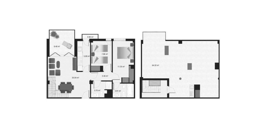Penthouse floor plan «B3A45», 2 bedrooms in Living Estepona