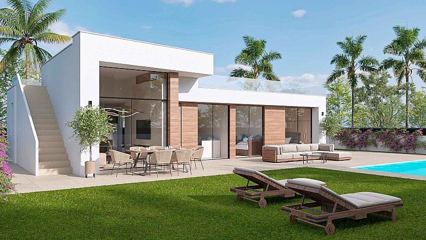 Ylelliset 3 makuuhuoneen huvilat Condado de Alhama Golfissa. Modernit luksushuvilat 2-3 makuuhuoneella ja 2 kylpyhuoneella suurilla tontilla Condado de Alhama Golfissa, Al-Kassar-ostoskeskuksen vieressä.