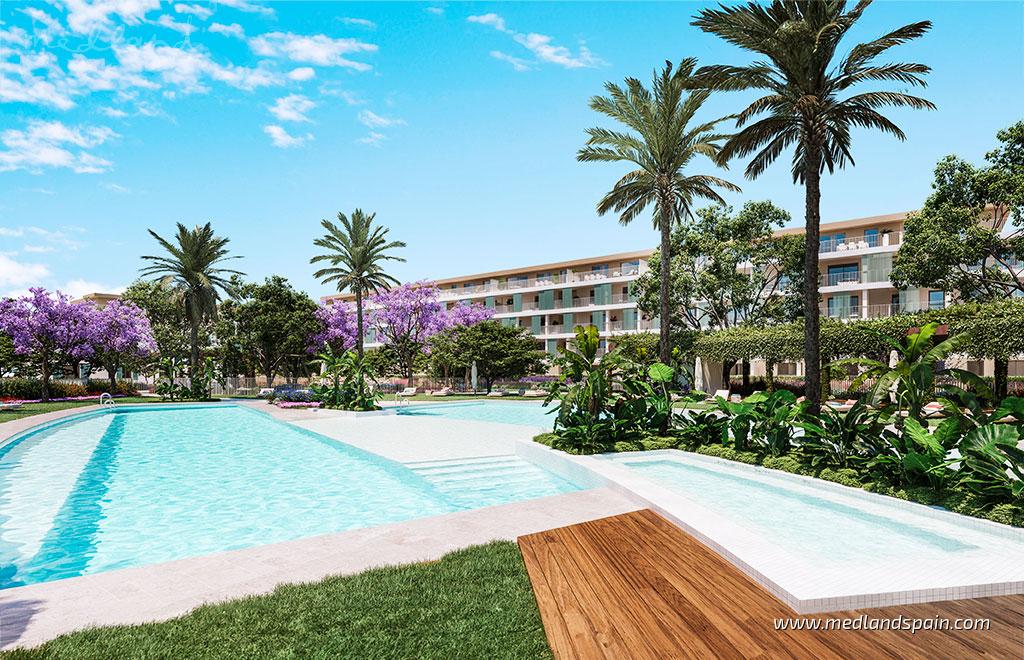 Nouveau projet d'appartements résidentiels situé à seulement 400 mètres de la plage de Denia. Un emplacement fantastique, à seulement 10 minutes à pied du yacht club et à proximité de tous types de services, tels que supermarchés, gare TRAM, magasins, banques, centre médical, écoles, hôpital, bars et restaurants. Grâce à la bonne connexion routière, vous pourrez rejoindre rapidement d'autres lieux d'intérêt de la région, comme Jávea en 20 minutes, Oliva en 30 minutes et Calpe en 35 minutes. De plus, les aéroports d'Alicante et de Valence se trouvent tous deux à un peu plus d'une heure du quartier résidentiel.La promotion propose des appartements modernes de 2, 3 ou 4 chambres, et disponibles en différents modèles. Comme rez-de-chaussée, la plupart avec jardins privés, étages intermédiaires et derniers étages avec de grandes terrasses. Dans tous les modèles, la zone jour a un design ouvert, combinant cuisine, salle à manger et salon dans un grand espace avec de grandes fenêtres donnant accès à la terrasse, et la chambre principale dispose d'une salle de bain en suite.