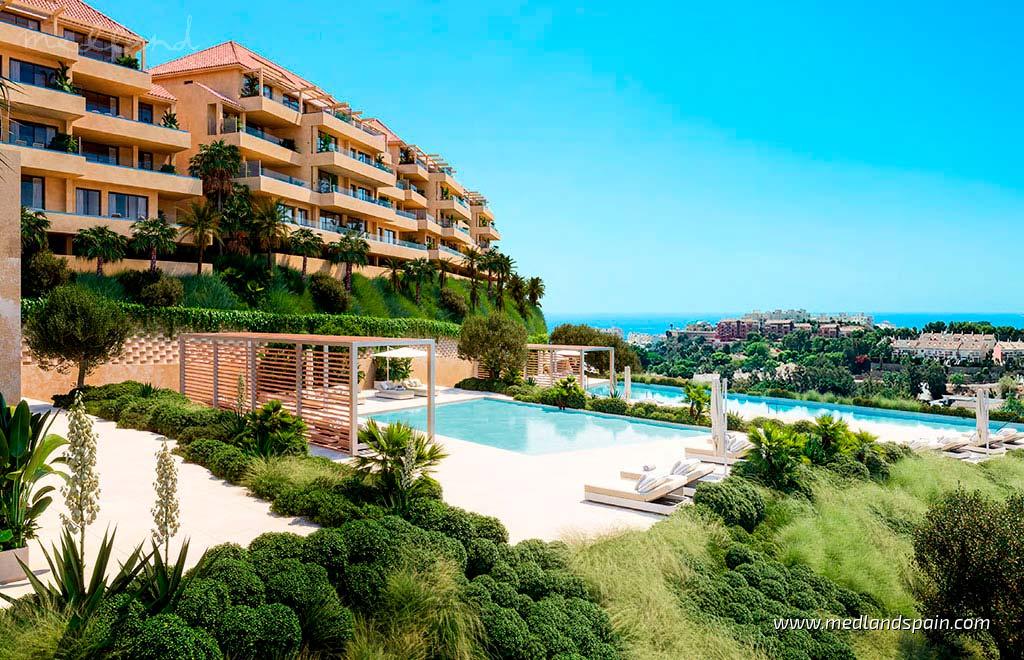 Situés dans les collines paisibles de Benalmádena, à proximité immédiate d’un parcours de golf, ces appartements allient élégance, intimité et harmonie avec la nature. Ce projet résidentiel contemporain a été conçu pour tirer le meilleur parti de son emplacement privilégié, avec des vues dégagées sur la Méditerranée et les fairways environnants. Il s’intègre dans un cadre tranquille, entouré de nature, à seulement quelques minutes des plages et de l’ambiance animée de Benalmádena Costa. Grâce à leur orientation, la plupart des logements bénéficient de magnifiques vues sur la mer et le golf.Les habitations suivent les lignes naturelles du terrain, garantissant luminosité et intimité tout au long de l’année. Chaque appartement dispose d’un vaste espace de vie ouvert réunissant salon, salle à manger et cuisine, qui s’ouvre sur de grandes terrasses. Les appartements de 2 chambres et 2 salles de bains offrent des intérieurs lumineux et des agencements confortables, tandis que les duplex du dernier étage, avec 3 chambres et 3 salles de bains, se distinguent par leurs volumes généreux. La suite principale se trouve à l’étage supérieur et comprend une terrasse privée, offrant encore plus d’intimité. Toutes les suites parentales disposent d’une salle de bains attenante avec double vasque. Chaque logement comprend une ou deux places de stationnement souterrain selon le modèle, certaines avec débarras. Conçus avec soin et des finitions de haute qualité, ils sont livrés avec une cuisine entièrement équipée et un système de climatisation par conduits pour un confort absolu tout au long de l’année.Les résidents bénéficient d’espaces communs remarquables : deux piscines extérieures entourées de zones de détente et de jardins, ainsi qu’un club exclusif comprenant piscine intérieure et spa, salle de sport, espace coworking, salles polyvalentes et vestiaires. L’environnement invite à un style de vie actif, entre golf, promenades côtières et sentiers naturels, sans oublier la variété d’activités de loisirs et de restaurants à proximité. Le secteur allie sérénité et accessibilité : le pittoresque Benalmádena Pueblo se trouve à 10 minutes, Torremolinos à 15 minutes, et Marbella ou Puerto Banús sont accessibles en moins de 40 minutes, tandis que l’aéroport de Malaga se situe à seulement 15 minutes en voiture.