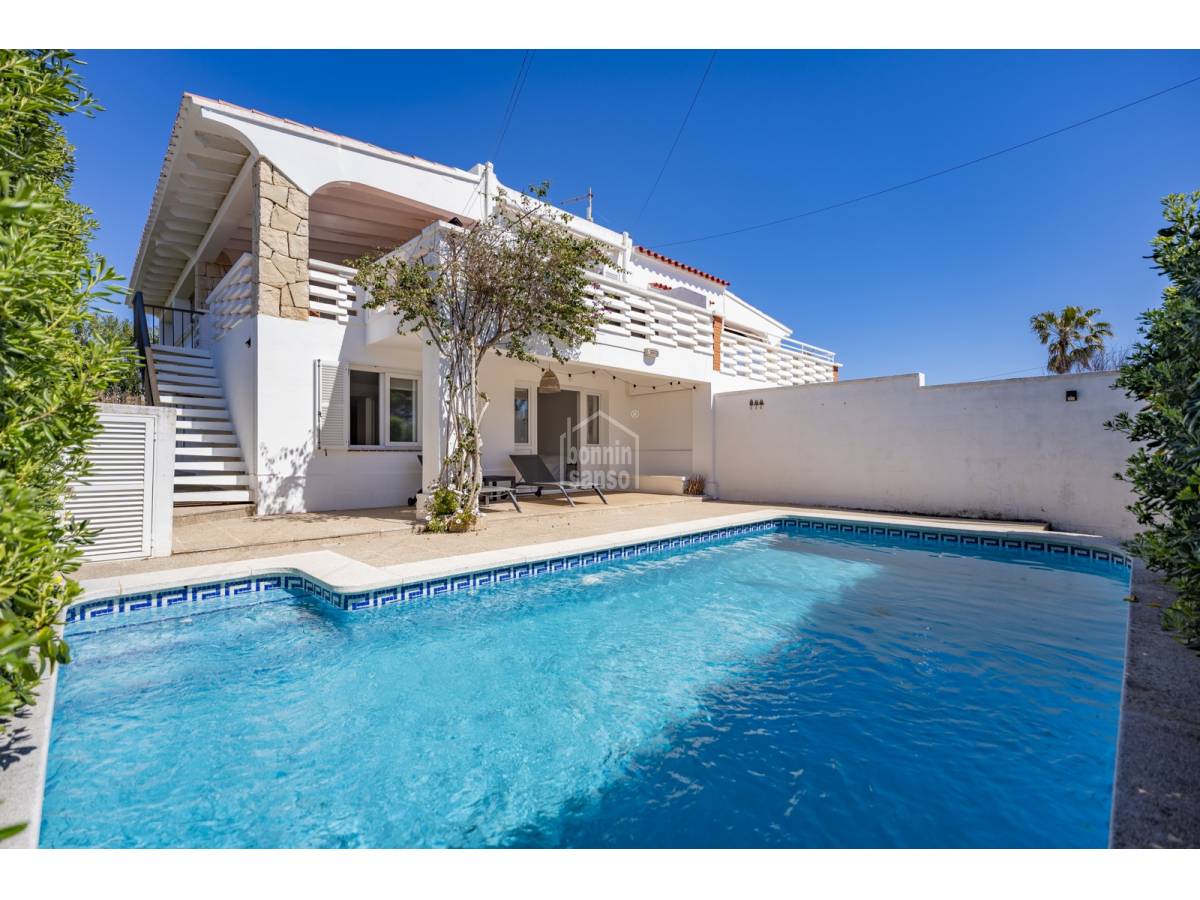 À quelques pas de la plage de Punta Prima, cette maison mitoyenne invite à imaginer un véritable art de vivre tourné vers la mer et la lumière.Répartie sur deux niveaux et offrant environ 118 m² habitables sur un terrain de 500 m², la propriété a été entièrement rénovée en 2020 dans un style chic, élégant et intemporel.