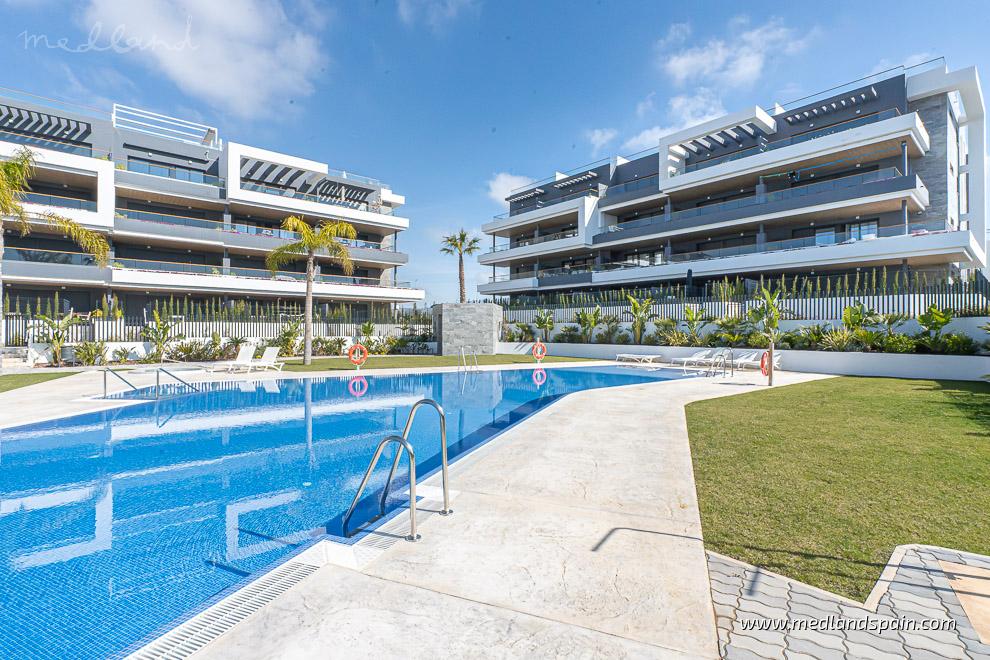 Ekskluzywny kompleks mieszkaniowy w szybko rozwijającej się dzielnicy mieszkalnej Torrevieja. Kompleks znajduje się niecałe 3 km od spektakularnych plaż La Mata i Torrevieja oraz zaledwie 5 minut od dużej dzielnicy handlowej, w tym centrum handlowego Habaneras, hipermarketu Carrefour i wielu restauracji. Dla miłośników sportu imponujący park sportowy Torrevieja znajduje się zaledwie 500 m od kompleksu, z boiskami do piłki nożnej i multidyscyplin sportowych, kortami tenisowymi i do padla oraz krytym basenem.Kompleks mieszkaniowy został zaprojektowany jak mała wioska, o powierzchni 20 000 m2, z czego 15 000 m2 jest przeznaczone na tereny wspólne. Kompleks będzie budowany etapami, a w każdym z nich znajdzie się duży basen w stylu plażowym dla dorosłych i jeden dla dzieci, jacuzzi, piękne ogrody z śródziemnomorską roślinnością i drzewami oraz ścieżki pieszo-rowerowe. Nie zabraknie również placów zabaw dla dzieci, boisk do gry oraz parkingów podziemnych i na świeżym powietrzu.Projekt przedstawia różne nieruchomości o różnych układach. Dostępne są mieszkania z 1, 2 i 3 sypialniami, rozmieszczone w blokach dwu - lub trzypoziomowych i dostępne w różnych modelach: modele na parterze z prywatnym ogrodem; modele na pierwszym piętrze z dużym tarasem; oraz penthousy z prywatnym solarium. Wszystkie apartamenty posiadają przestronną część dzienną na otwartym planie, łączącą salon, jadalnię i kuchnię, z dużymi oknami wychodzącymi na taras. Apartamenty te obejmują klimatyzację kanałową, ogrzewanie podłogowe w łazienkach, oświetlenie LED w łazienkach i kuchni, komórkę lokatorską oraz prywatne miejsce parkingowe z preinstalacją stacji ładowania samochodów elektrycznych. Modele na parterze mają sztuczną trawę w ogrodach. Modele na najwyższym piętrze mają miejsce do grillowania i taras na świeżym powietrzu w solarium.Istnieją również wille w zabudowie bliźniaczej, z 3 sypialniami i 3 łazienkami, rozmieszczone na dwóch piętrach oraz prywatne solarium. Parter jest otwarty, z dużymi oknami prowadzącymi na teren zewnętrzny, który obejmuje duży taras i parking zadaszony pergolą. Na parterze znajduje się sypialnia i łazienka. Na pierwszym piętrze znajduje się sypialnia z łazienką oraz główna sypialnia z łazienką, garderobą i tarasem. Wewnętrzne schody prowadzą do solarium. Wszystkie te domy wyposażone są w klimatyzację kanałową, grzejnik na ręczniki i ogrzewanie podłogowe w łazienkach, oświetlenie LED w łazience i kuchni, sztuczną trawę w ogrodzie, preinstalację do jacuzzi na solarium oraz parking na terenie posesji z preinstalacją stacji ładowania samochodów elektrycznych. Za dodatkową opłatą i w zależności od modelu i etapu budowy istnieje możliwość wybudowania basenu w ogrodzie.