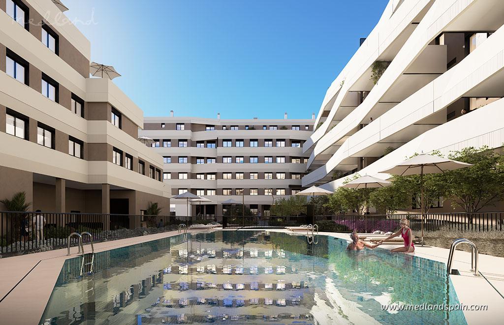 W nowej, dynamicznie rozwijającej się dzielnicy miasta te apartamenty w Maladze łączą nowoczesny design, komfort i troskę o dobre samopoczucie w tętniącym życiem, przyszłościowym otoczeniu. Inwestycja stanowi część nowo planowanej strefy miejskiej z szerokimi, zielonymi alejami, ścieżkami rowerowymi, placami zabaw i strefami do ćwiczeń na świeżym powietrzu – wszystko zaprojektowane z myślą o stworzeniu przyjaznego, dobrze skomunikowanego miejsca do życia w pobliżu najważniejszych udogodnień. Lokalizacja zapewnia doskonałe połączenia komunikacyjne, z łatwym dostępem do metra, kolei, szpitali, centrów handlowych, restauracji i uniwersytetu. Międzynarodowe lotnisko znajduje się zaledwie dwadzieścia minut jazdy samochodem.Kompleks obejmuje jasne, przestronne mieszkania z 1, 2 lub 3 sypialniami, zaprojektowane z myślą o maksymalnym doświetleniu i funkcjonalności. Mieszkania na parterze dysponują prywatnymi tarasami, które właściciele mogą zagospodarować według własnego uznania, a penthouse’y wyróżniają się imponującymi panoramicznymi tarasami. Wnętrza charakteryzują się dużymi oknami, otwartymi strefami dziennymi oraz głównymi sypialniami z łazienkami en-suite (z wyjątkiem mieszkań z jedną sypialnią). Kuchnie są w pełni wyposażone w sprzęt AGD, a każde mieszkanie ma klimatyzację kanałową, kompletne łazienki, miejsce parkingowe i komórkę lokatorską.Ponad 1 000 m² części wspólnych zostało zaprojektowanych z myślą o wypoczynku, rekreacji i aktywnym stylu życia. Do dyspozycji mieszkańców jest duży basen odkryty, brodzik dla dzieci, zielone strefy do opalania oraz kryty basen z podgrzewaną wodą. Kompleks oferuje także w pełni wyposażoną siłownię, strefę crosstrainingu na świeżym powietrzu, spa z sauną i łaźnią turecką, zewnętrzną strefę Mindfulness & Yoga, salę kinową, przestrzeń coworkingową, inteligentne szafki, warsztat rowerowy oraz szatnie. Inteligentny system zarządzania budynkiem pozwala na kontrolę dostępu i rezerwację wspólnych przestrzeni za pomocą aplikacji, co zapewnia nowoczesny komfort na co dzień.Te apartamenty w Maladze to doskonały wybór dla osób poszukujących nowoczesnego domu w nowej, perspektywicznej dzielnicy, otoczonej zielenią, lokalnymi usługami i pełnym zakresem udogodnień sprzyjających wypoczynkowi i dobremu samopoczuciu.
