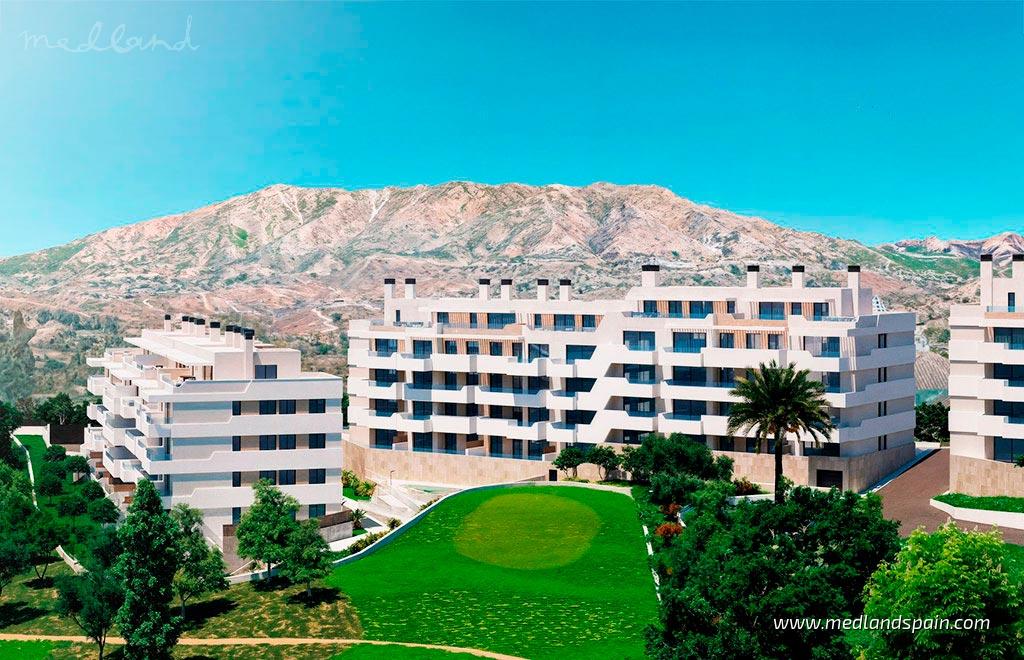 Położone w spokojnym, naturalnym otoczeniu tuż obok pola golfowego, te mieszkania w Mijas Costa łączą ciszę i relaks z doskonałą komunikacją z wybrzeżem oraz sąsiednimi miejscowościami. Zostały zaprojektowane z myślą o komforcie i dobrym samopoczuciu mieszkańców, tworząc harmonijne połączenie przestrzeni wewnętrznych i zewnętrznych. Piaszczyste plaże Fuengiroli i La Cala de Mijas znajdują się około 15 minut jazdy samochodem, a do lotniska w Maladze można dotrzeć w około 25 minut. Lokalizacja zapewnia prywatność, a jednocześnie dostęp do usług, sklepów i różnorodnych form spędzania wolnego czasu.Inwestycja obejmuje nowoczesne mieszkania z 1, 2 lub 3 sypialniami, wszystkie z tarasami, które powiększają strefę dzienną o przestrzeń na świeżym powietrzu. Niektóre mieszkania na parterze mają ogród, natomiast penthouse’y oferują przestronne tarasy sprzyjające wypoczynkowi na zewnątrz. Każde mieszkanie posiada jasny salon z kuchnią w stylu amerykańskim, połączony bezpośrednio z tarasem. Wnętrza koncentrują się na funkcjonalności i dostępie naturalnego światła, a wyposażenie obejmuje elektryczne rolety w salonie i sypialniach, klimatyzację kanałową z systemem Airzone oraz łazienki wykończone wysokiej jakości materiałami.
