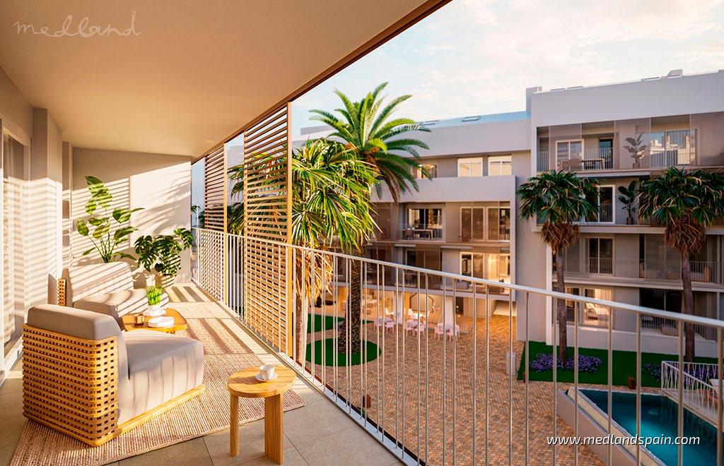 Wszystkie apartamenty posiadają otwartą część dzienną, łączącą kuchnię, jadalnię i salon w jednej przestrzeni z dużymi oknami wychodzącymi na taras. Główna sypialnia posiada prywatną łazienkę, a w niektórych modelach również wyjście na taras. Z niektórych penthousów roztacza się widok na morze.Apartamenty wyposażone są w klimatyzację kanałową (ciepło/zimno), kompletne łazienki, oświetlenie i wtyczkę elektryczną na tarasach, komórkę lokatorską oraz miejsce parkingowe. W zależności od etapu budowy istnieje możliwość dostosowania wykończenia do indywidualnych potrzeb z wyboru materiałów. Możliwe jest również, za dodatkową opłatą, uwzględnienie dodatkowych ulepszeń, takich jak zainstalowanie prywatnego basenu na tarasie niektórych modeli penthousów.Kompleks obejmuje wiele obszarów wspólnych, w których można cieszyć się śródziemnomorskim klimatem, w tym duży basen i strefę relaksu, toalety, duże ogrody, ścieżki dla pieszych, siłownię, świetlicę i parking dla rowerów. Kompleks jest w pełni przystosowany dla osób niepełnosprawnych, z podjazdami dla osób o ograniczonej sprawności ruchowej.
