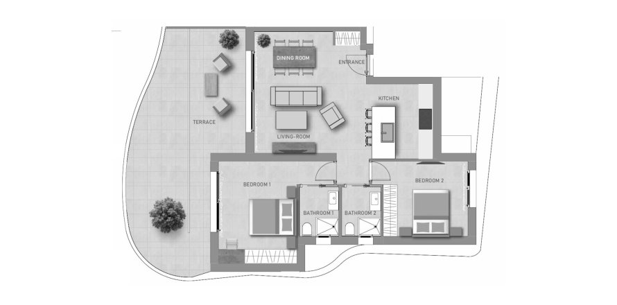 Apartment floor plan «2BR-36», 2 bedrooms in SALISOL RESORT