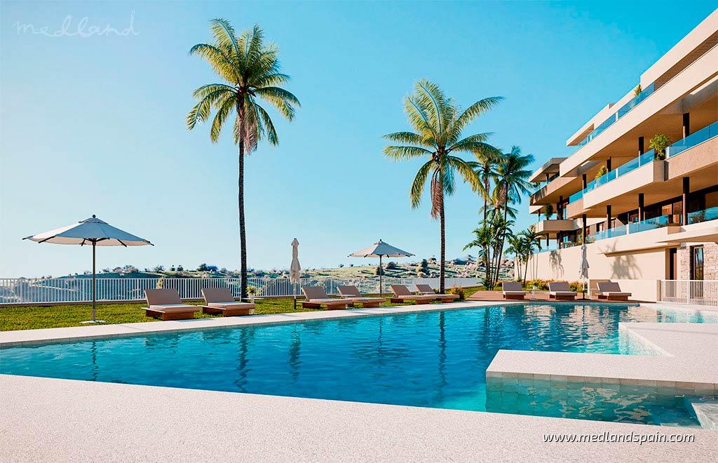 Exclusive apartments in Mijas Costa, located less than 10 minutes' drive from the beach. A fantastic location, surrounded by nature and close to all the daily amenities, like shopping centres, supermarkets, a health centre, banks, bars and restaurants. The residential is within walking distance of several golf courses, such as Chaparral Golf Club, and Cerrado del Águila Golf & Resort. The area also offers a wide range of adventure sports, like paragliding and all forms of water activities. The good road connection makes it easy to reach other places of interest on the Costa del Sol, like Fuengirola in 10 minutes, Puerto Banús and Marbella in 30 minutes, and Malaga in 35 minutes, while its international airport in only 20 minutes.The project comprises various buildings with apartments with 2 or 3 bedrooms and 2 bathrooms. The apartments are very bright, and have large terraces. Some ground floors also have a private garden. All apartments present an open-plan living area, combining the dining area, living room, and kitchen in a single space with access to the terrace. The master bedroom has an en-suite bathroom, and in some models, it also has access to the terrace. Depending on their orientation, some apartments enjoy beautiful views of the mountains and/or the sea.The apartments include a fully equipped kitchen with white goods, ducted A/C, fully equipped bathrooms, a storage room and a parking space.The residential is completely closed and includes various community areas, with an outdoor, salt-water pool with a hammock and chill-out area, more than 13,000m2 of beautiful garden areas, BBQ and picnic areas. Residents will also be able to enjoy indoor facilities, like a fully equipped gym and a community room with a coworking area.