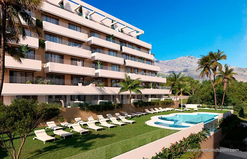 All apartments have an open plan living area that combines the kitchen, dining area and lounge in a single space, which opens onto the terrace. The master bedroom has a private bathroom and opens either onto the main terrace or a private terrace, depending on the model. Apart from the penthouses, and depending on the location within the complex, some apartments also have sea views.The apartments are built with high quality materials and include ducted A/C, fully equipped kitchen with white goods, fitted wardrobes, complete bathrooms with heated towel rails, a storage room, and one or two parking spaces in the underground garage. The complex is completely gated and has various community areas, with a large pool surrounded by spacious garden areas for relaxing and sunbathing, a gym, a community room with gastrobar and a co-working room.