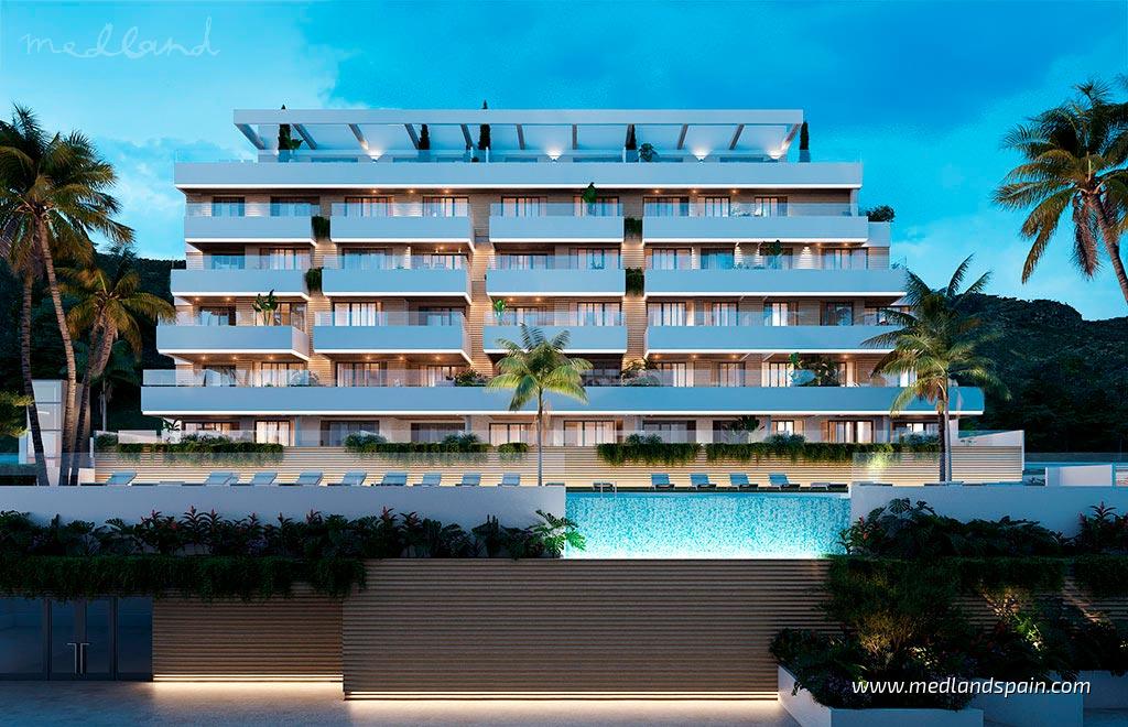 New apartment complex in Torremolinos, in the heart of the Costa del Sol. The area provides everything needed for a comfortable life, like supermarkets, shops, a medical centre, bars and restaurants. The wide range of leisure activities appeals to all ages, including a water park, natural landscapes, various golf courses and water sports at the beautiful beaches. The good road network, with the AP-7 and the N-340 motorways, allows for quick access to other cities in the province, like Benalmádena in 10 minutes, Fuengirola in 15 minutes and Malaga in 20 minutes. Also, the complex is only 10 minutes from Malaga airport, and 20 minutes from the AVE (high-speed train) station, which connects to the rest of the country. The project presents modern apartments with 1, 2, 3 or 4 bedrooms, available in different models: ground floor models with 1 and 2 bedrooms with a private garden, mid-floor models with 2, 3 and 4 bedrooms with a terrace, and penthouses with 2 and 3 bedrooms with a large terrace and beautiful sea views. All apartments have an open plan living area that combines the kitchen, dining area and lounge in a single space, which opens onto the terrace. The master bedroom has a private bathroom and opens either onto the main terrace or a private terrace, depending on the model. Apart from the penthouses, and depending on the location within the complex, some apartments also have sea views.The apartments are built with high quality materials and include ducted A/C, fully equipped kitchen with white goods, fitted wardrobes, complete bathrooms with heated towel rails, a storage room, and one or two parking spaces in the underground garage. The complex is completely gated and has various community areas, with a large pool surrounded by spacious garden areas for relaxing and sunbathing, a gym, a community room with gastrobar and a co-working room.