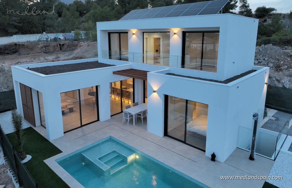 Experience this unique development of single-family homes in the exclusive area of Alfaz del Pí, close to the stunning beaches of El Albir. Enjoy the perfect blend of nature and the conveniences of a city, with supermarkets, banks, pharmacies, bars, restaurants, a medical centre, and international schools all nearby.The area offers a wide range of sports activities, including excellent golf courses, hiking trails, a sports centre, and water sports at the local beaches. The neighbouring city of Benidorm provides additional leisure options, such as theme parks, cultural attractions, entertainment venues, and vibrant nightlife.The exceptional road network ensures easy access to major urban areas of Costa Blanca, including Alicante and its airport, just 40-50 minutes away, respectively.These exclusive villas are distributed over two floors, with 3 bedrooms, 2 bathrooms and a guest toilet. Designed to create bright interior spaces and with exceptional outdoor areas, that are perfect for enjoying the traditional Spanish lifestyle year-round with spectacular sea views.