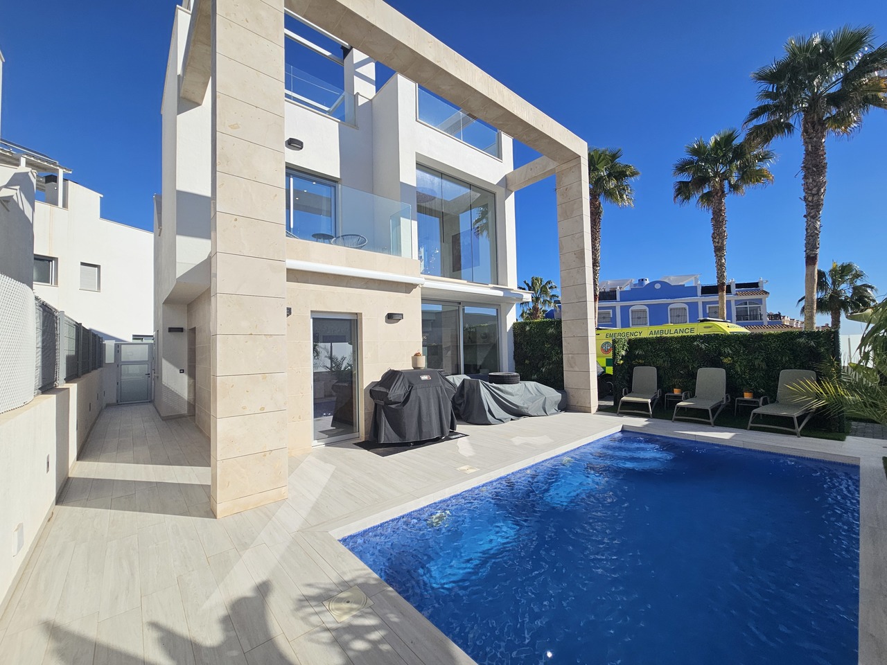 Bedrooms: 3Bathrooms: 3Living space: 208 m2Distance to the sea: 400 mComplex of 4 villas in Pilar de la Horadada 400 meters from the Mediterranean beaches Details