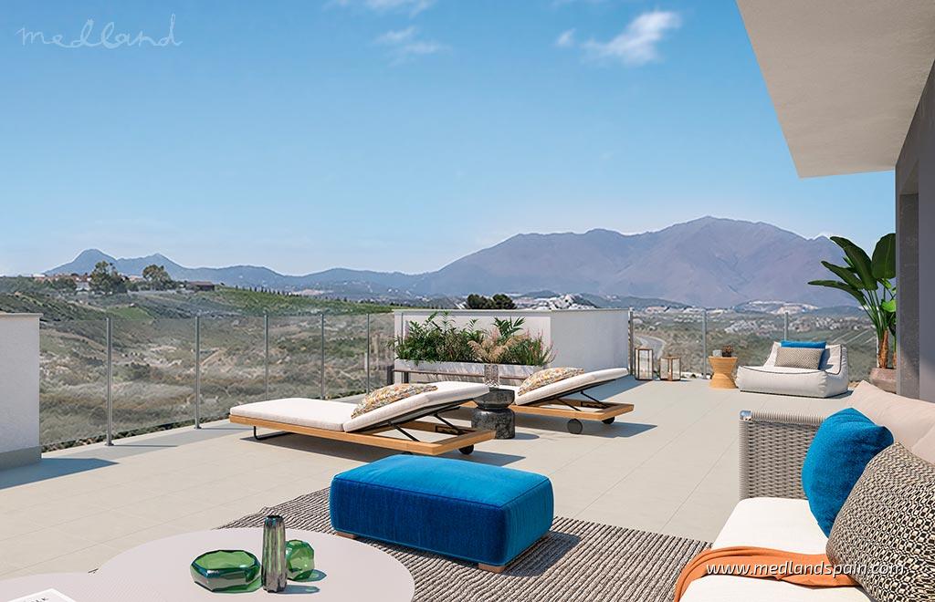 New residential complex in an exclusive golf resort in Manilva, only 1km from the marina and the beach. The town of Manilva lies in a prime location on the border between the Cadiz and Malaga provinces, benefiting from a choice of fantastic beaches and a complete selection of services available in both areas. For outdoor enthusiasts, the area includes many prestigious sports facilities, like marinas and golf courses, such as La Duquesa and Sotogrande. The excellent A-7 motorway makes it easy to visit other tourist areas along the Costa del Sol, like Estepona in 20 minutes, Marbella in 40 minutes, as well as Malaga, and its airport, in just over an hour. Gibraltar airport is only 40 minutes away.The project presents apartments with 2 or 3 bedrooms and 2 bathrooms, distributed in blocks of three and four floors, with a choice of models: ground floor models with or without private garden; mid-floor models; and penthouse models with spacious terraces. All models have an open plan living area, combining the lounge, dining area and kitchen into a single space, with large windows that open onto the terrace.