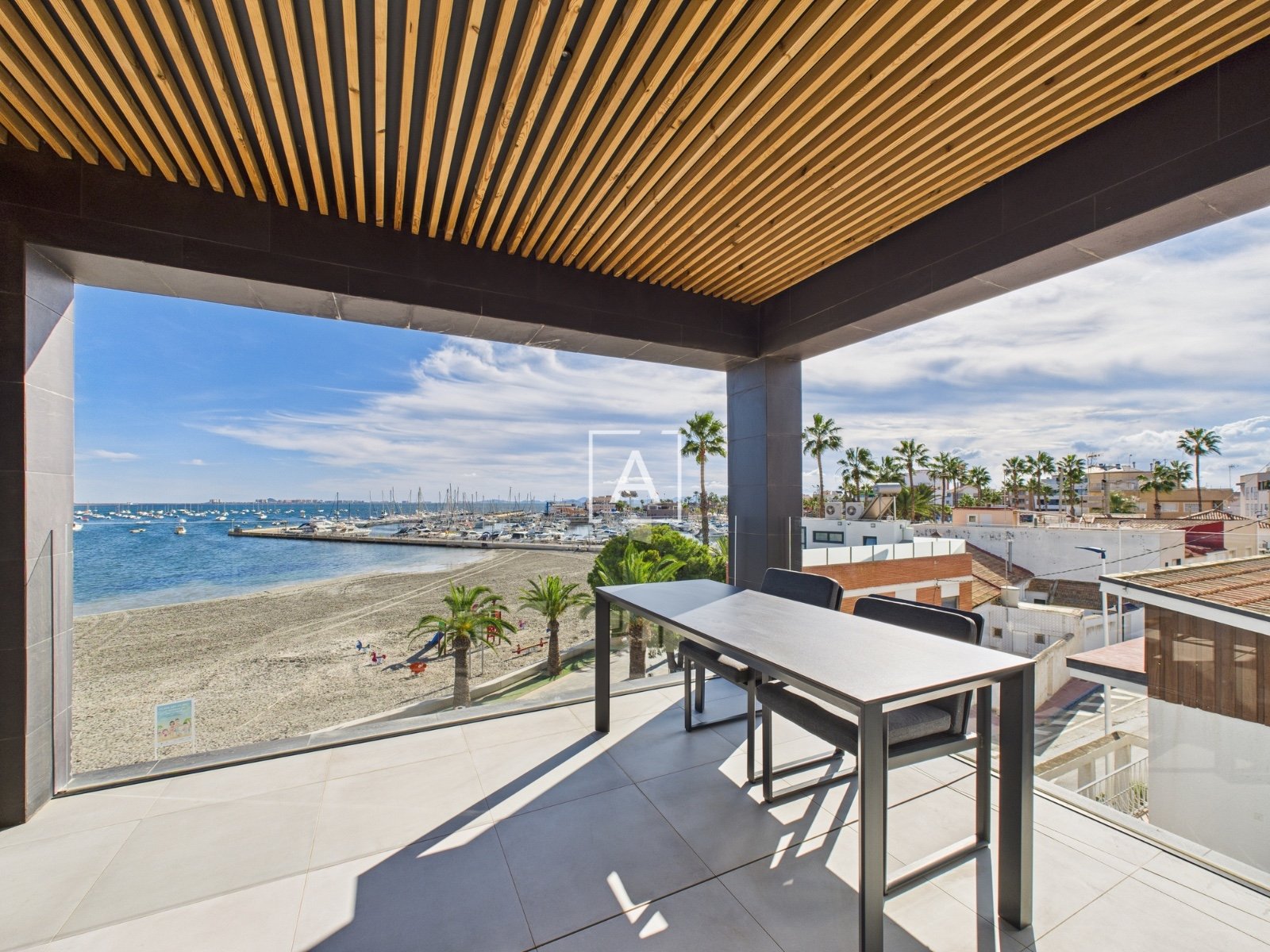 Perched on the front line of Lo Pagán, this magnificent 3-bedroom, 3-bathroom penthouse captures the essence of luxury coastal living. Built in 2021, it offers uninterrupted panoramic views of the Mar Menor, refined modern interiors, and generous outdoor spaces designed to embrace the beauty of the Mediterranean.Step inside to discover an elegant open-plan living area, where floor-to-ceiling windows frame endless sea vistas. The sleek kitchen, complete with a central island, flows seamlessly into the dining and lounge area — perfect for both relaxed living and entertaining.