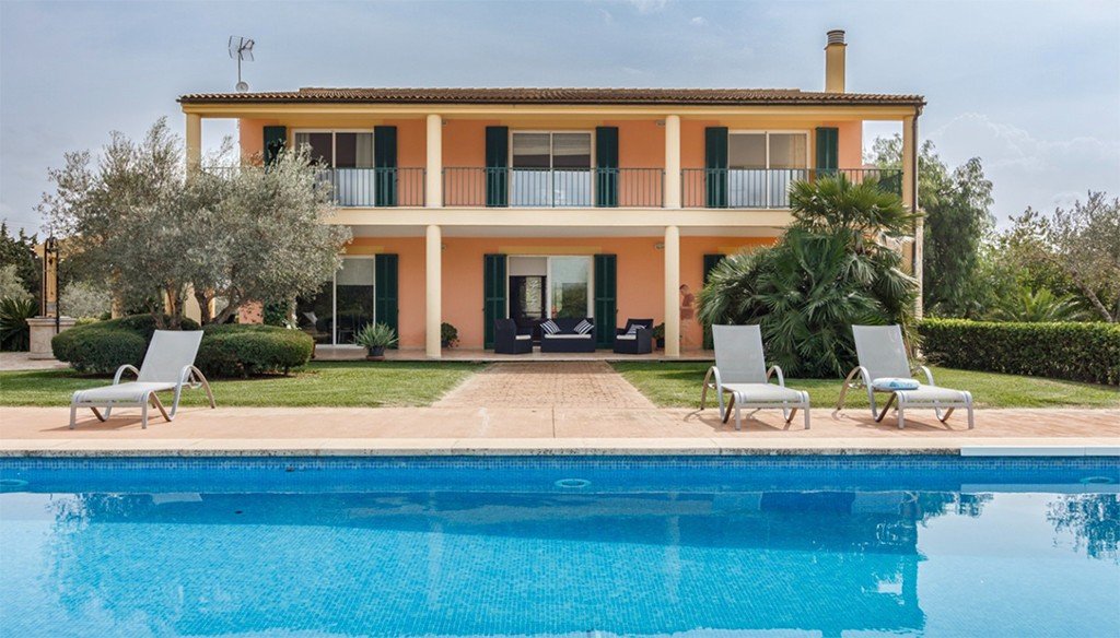 Beautiful house on a plot of 11.754m2 with superb views of the Sierra Tramuntana mountains, just 2km from Inca. The property has a 375m2 main house, an outbuilding with living room and carport to park 2 cars, outbuildings, a swimming pool with 78m2 of water and a large pond. The main house has 2 floors and the interior is spacious, each room is large and spacious. On the ground floor there is an entrance hall, living room with access to a terrace with a canopy of 113 m2, kitchen, dining room, bedroom with bathroom and a guest toilet. On the first floor, linked by an internal staircase, there is a second living room and 3 bedrooms with en-suite bathrooms (one of them a master bedroom with a large dressing room) as well as a 56m2 terrace. The house is equipped with double-glazed windows and Majorcan shutters, central heating (natural gas), air conditioning in 2 rooms, wireless internet, water softener. A very important advantage is its own water, which feeds the garden and the house. The property was built in 2004. On the plot there is a garden with olive, orange and grapefruit trees, a swimming pool with a sunbathing terrace on the west side with panoramic mountain views. The ancillary house has a lounge (games room), barbecue and powder room. The location next to the old road to Alcudia makes it possible to reach the centre of Inca in a few minutes. Ideal property to rent out! Call or email us now for more advice on this property! Feel free to contact our real estate agency "GRUPO TERRASUN" with any questions you may have about the property for any further information and to arrange a visit