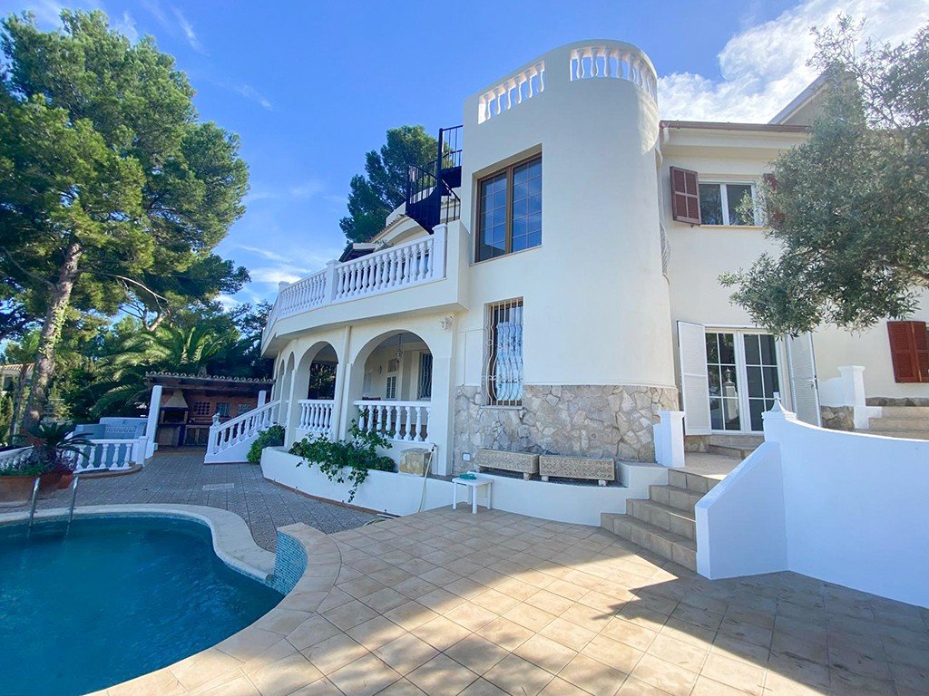 This villa with breathtaking sea views is located in one of the most prestigious areas of Santa Ponsa — a quiet and privileged residential zone in the southwest of Mallorca. Thanks to its elevated position, the property offers magnificent panoramas of the Mediterranean Sea and a sense of privacy, while remaining close to the beach, marina, and local amenities. The plot of 1,024 m² is surrounded by greenery and features spacious terraces, a relaxing outdoor area, and a private pool. The total built area of 352 m² is distributed over two levels. The layout is designed to make the most of natural light and sea views: large panoramic windows fill the house with sunlight and create a feeling of openness and airiness. The villa offers 4 spacious bedrooms and 4 bathrooms, a fully equipped kitchen with a central island, and several outdoor terraces leading to the pool and relaxation zones. The property requires renovation but, thanks to its great potential, location, and architectural features, it can easily be transformed into a modern premium residence — ideal for permanent living or as a holiday retreat. With its combination of panoramic sea views, generous plot, private pool, and exclusive location, this villa represents a rare investment opportunity in one of the most sought-after areas of southwest Mallorca.