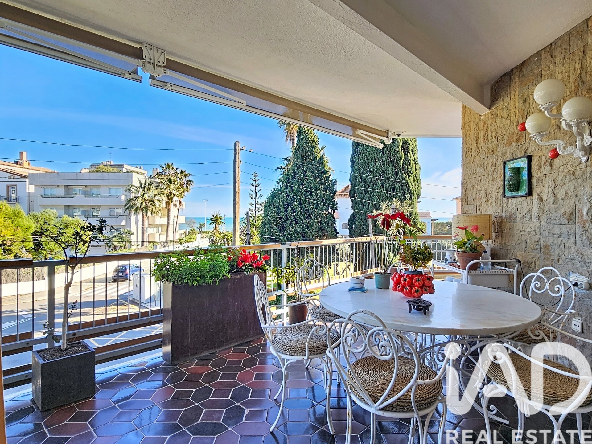 The property offers 153 m² of built space and an impressive 52 m² wrap-around terrace that surrounds the entire apartment, providing pleasant sea views, especially from the living room. Its southeast orientation ensures exceptional natural light throughout the day, creating a warm and welcoming atmosphere.