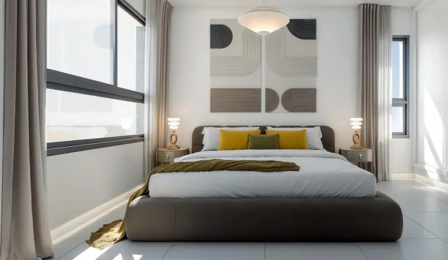 Inside, the homes are equipped with features that ensure maximum comfort. Each townhouse has three bedrooms and three bathrooms, providing a spacious and functional area for the whole family. Built-in wardrobes are a standard feature, offering practical and stylish storage solutions. The layout of the spaces has been designed to optimize natural light and ventilation, creating a warm and bright atmosphere in every corner of the house.