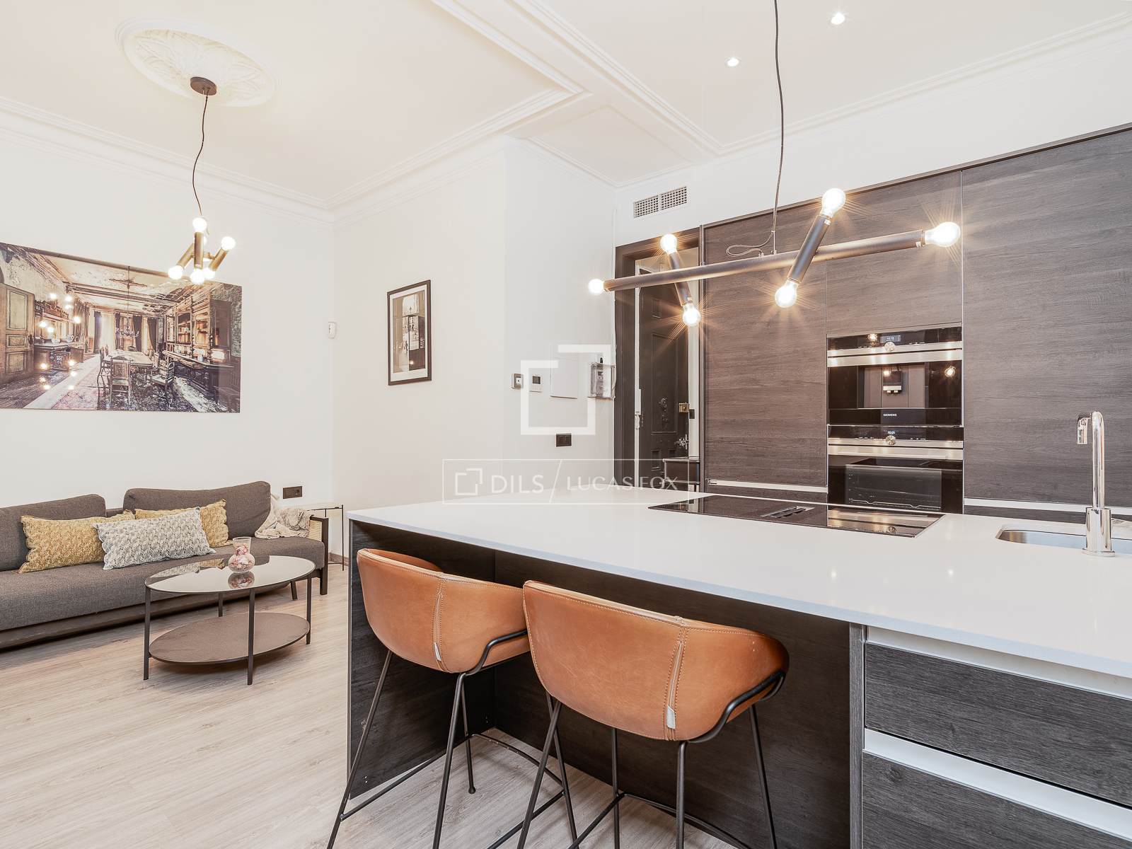Rooms: StudioLiving space: 45 m2We present you a fantastic sunny house, and recently renovated brand new next to the Sant Antoni Market. The house is located in one of the most attractive and charming neighborhoods in Barcelona. The reform has preserved the original period elements: beams, carpentry, solid mahones, giving personality to the house. Excellent finishes both in design and quality. The property is located in a building dating from the year 1900, the surface is 43 m2, with a 3.5 m2 terrace; This property has a perfect distribution in the kitchen - dining room, living room, bathroom and double bedroom giving a unique feeling of spaciousness and comfort. The house has an alarm, hot / cold air conditioning, a fully equipped kitchen with electrical appliances; ready to move in. Details