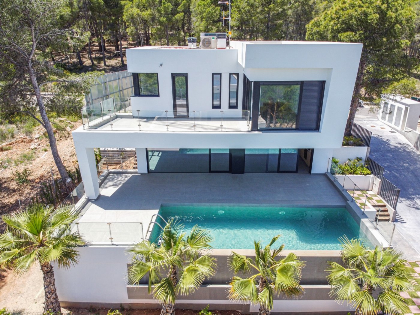 Lovely brand-new villas for sale with spectacular views in Polop.. . The villas distribute on one floor plus basement. The property features 3 double bedrooms, 2 bathrooms (one of them en-suite to the master bedroom), an open-plan modern kitchen, and a light, bright and airy living/dining area with panoramic glazing and access to the covered terrace, the garden and the private pool.. . Two of the bedrooms have fitted wardrobes, while the master bedroom has a spacious walk-in wardrobe as well as its own terrace with open views to the valley of Polop. Off-street parking space for 2 vehicles. Private swimming pool of 21 sq m. Also available for sale one-floor villas.. . Polop is based just a 15-min drive from Benidorm and Calpe and a 30-min drive from Alicante, it is a nice location ideal for those who search privacy and peace, staying at next to all amenities.Location